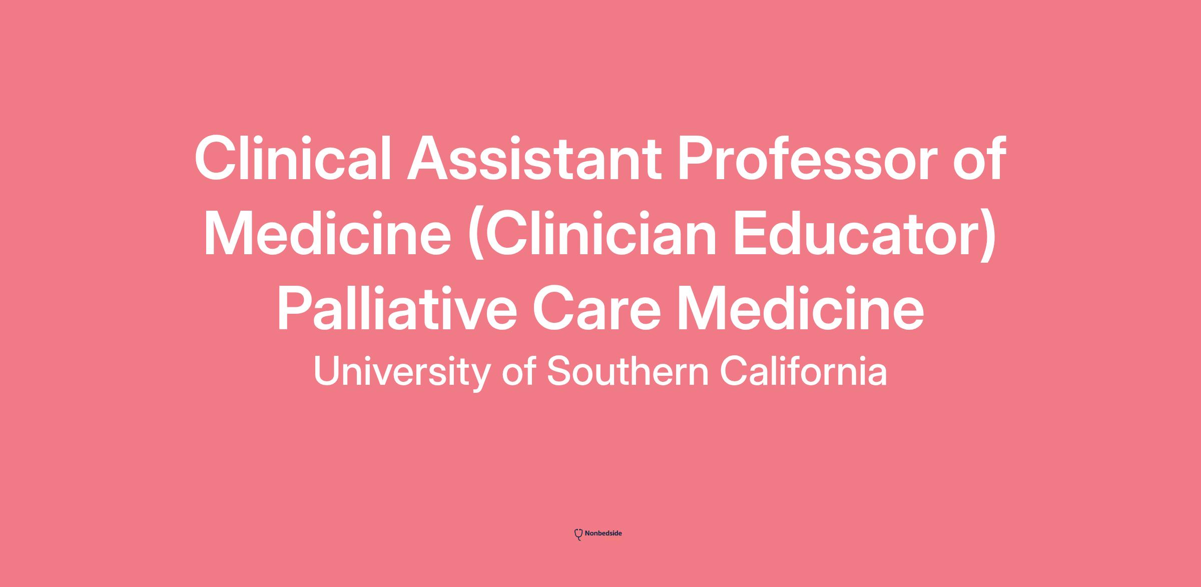 Qualifications Applicants must hold an active California medical license and a fee-paid, full-schedule DEA with a California address at the time of credentialing. Board-certified in Palliative Medicine and eligible for an academic appointment at USC are required.