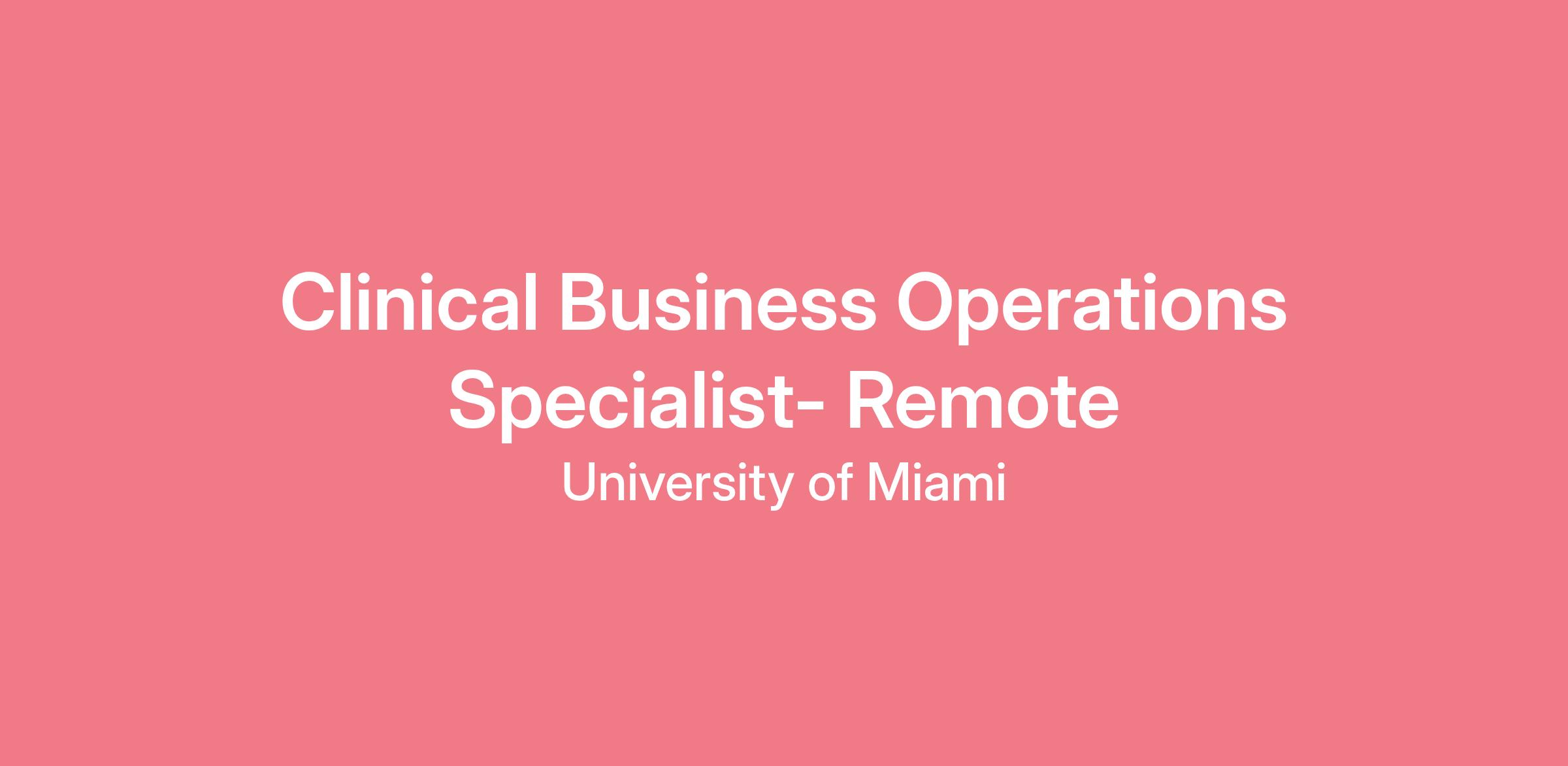 The Department of Surgery is currently seeking a Full-Time Clinical Business Operations Specialist to work remote. The Clinical Business Operations Specialist serves as a lead to Clinical Business Operations Representatives and facilitates the prompt resolution of highly complex problems related to pre and post care that arise in daily clinical operations. The incumbent performs administrative and receptionist functions, to include answering incoming calls, efficient management of patients, and the acquisition of necessary patient care and records. The Clinical Business Operations Specialist assists patients in a courteous, efficient, and professional manner and ensures adherence to divisional and departmental service standards.