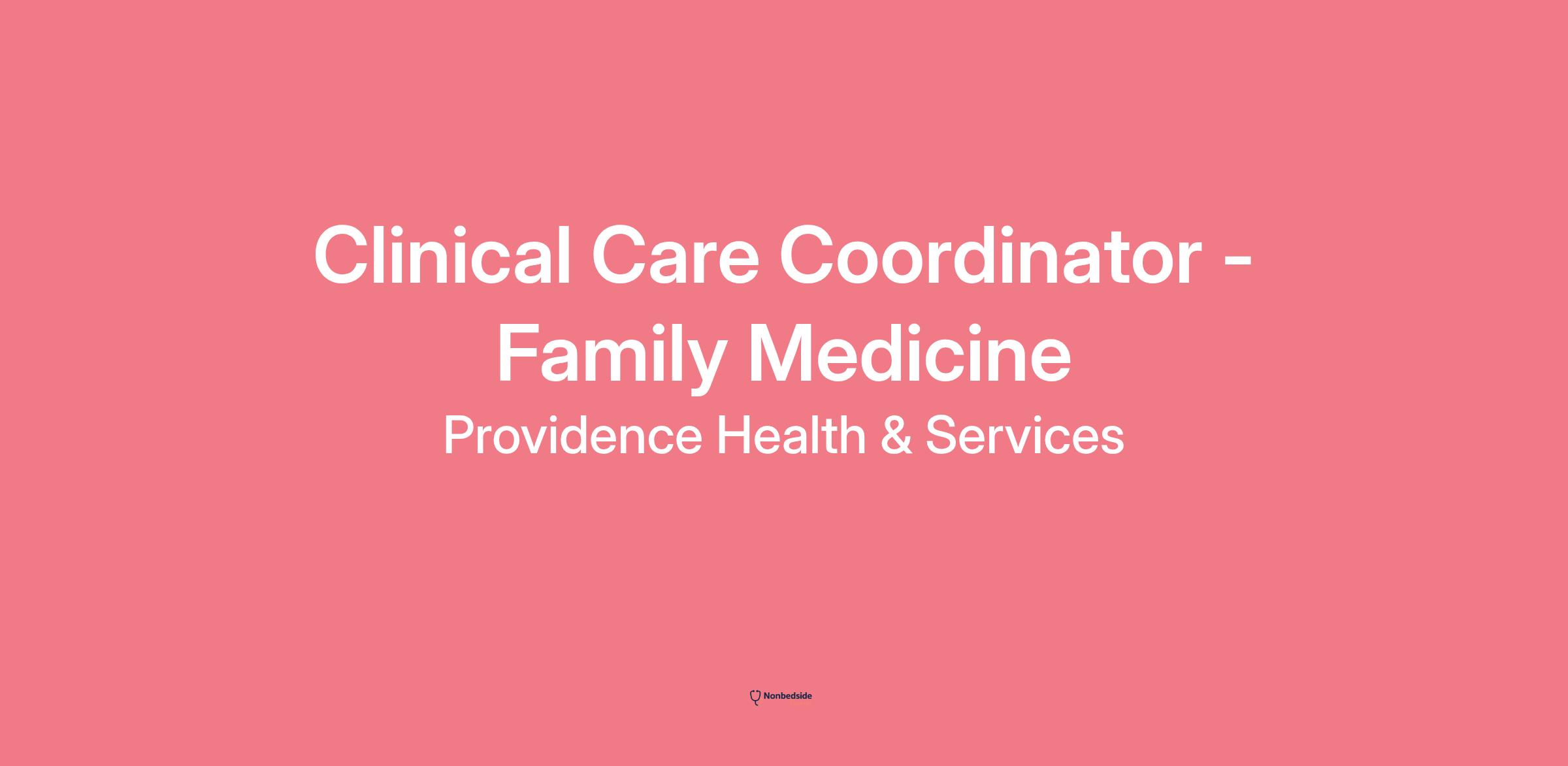 Join to apply for the Clinical Care Coordinator - Family Medicine role at Providence Health & Services .