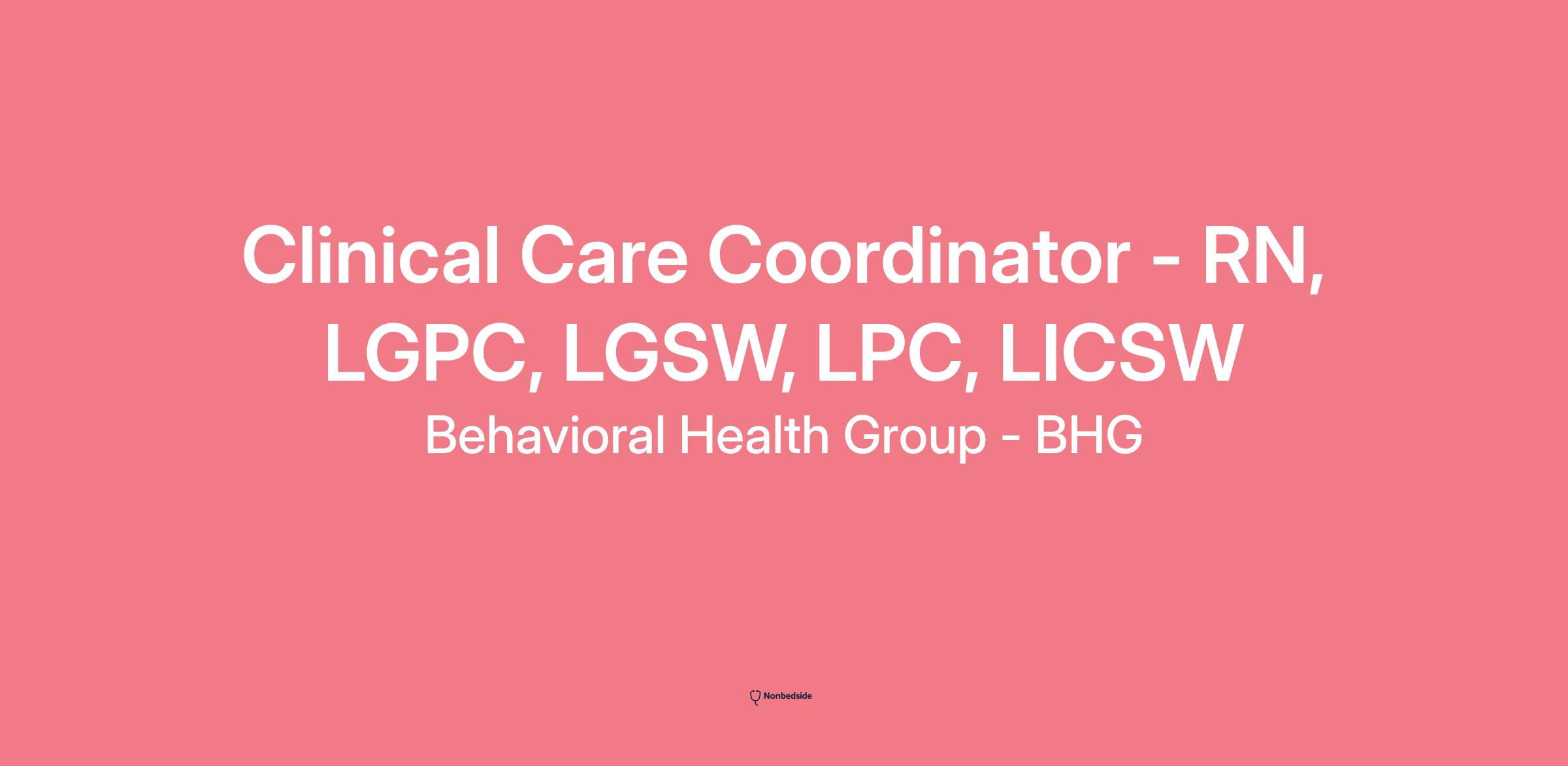 Clinical Care Coordinator - RN, LGPC, LGSW, LPC, LICSW