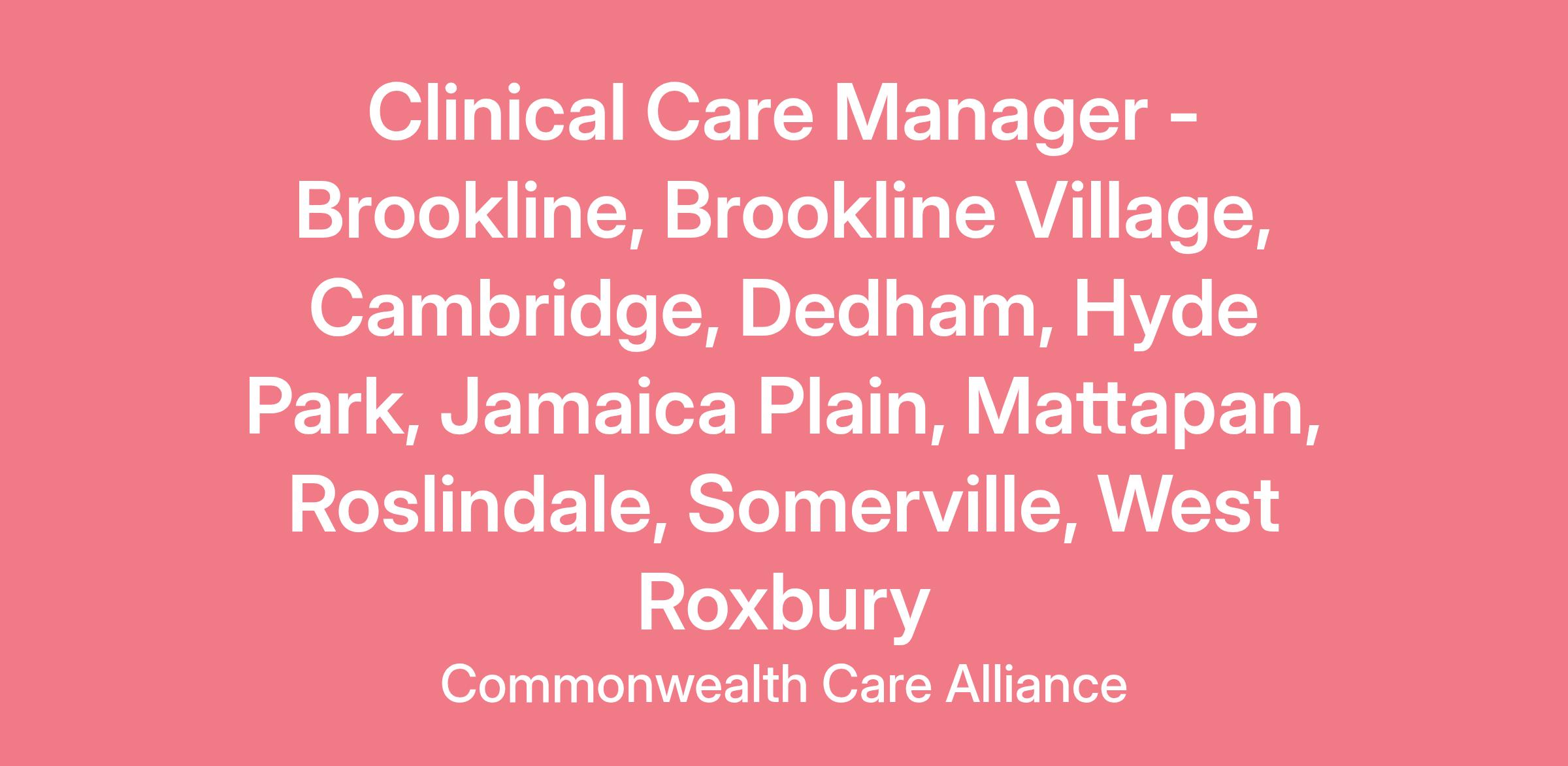 Commonwealth Care Alliance's Clinical Care Manager is a registered nurse or other independently licensed behavioral health clinician responsible for providing intensive monitoring, follow-up, and clinical care management to a panel of health plan members with complex medical, behavioral, and social care needs, including Severe and Persistent Mental Illness. As part of the care management dyad, the Clinical Care Manager works directly with assigned CCA members to help them navigate the health care system, gain access to available services, and assist members with finding answers to their questions. The Clinical Care Manager functions as the clinical expert on an interdisciplinary team through close member oversight, routine and post discharge assessments, providing health education, and provider collaboration. Consults, as needed, with other participants of the interdisciplinary care team on members experiencing medical or behavioral health issues. Responsible for supporting the members in achieving their goals for independent living, recovery, and community connections. This position allows for remote work, when possible, but does require in-person visits to members in their homes and community, as needed.