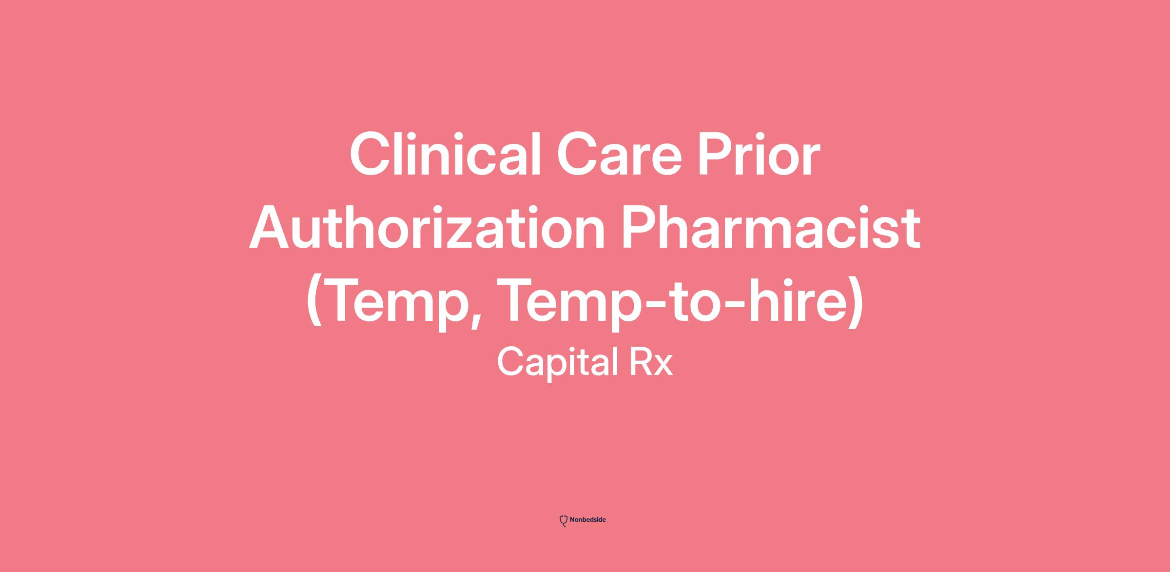 Clinical Care Pharmacist (Temp, Temp-to-hire) Join to apply for the Clinical Care Pharmacist (Temp, Temp-to-hire) role at Capital Rx