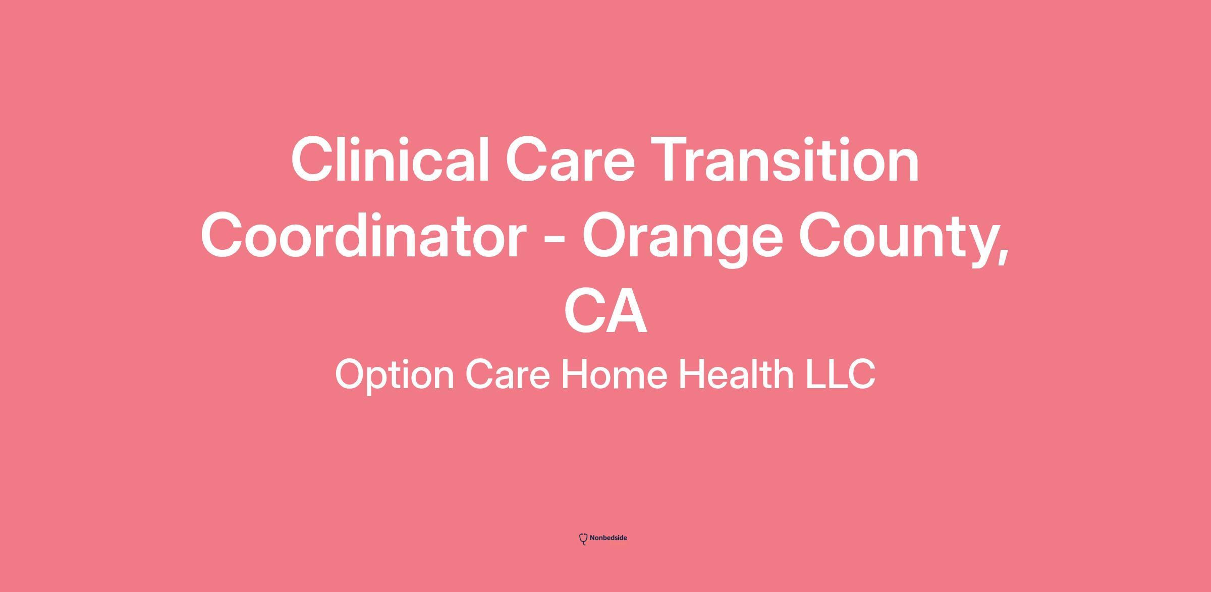 Join Option Care Home Health LLC to apply for the Clinical Care Transition Coordinator role, a key position in a rapidly growing home infusion provider that serves patients across the United States.