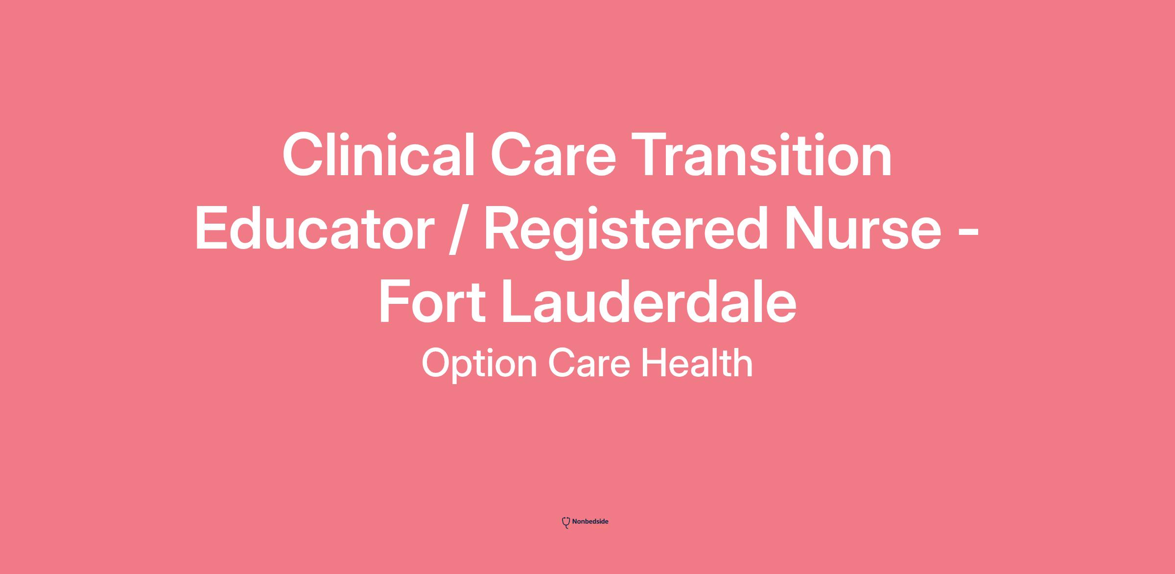 The Clinical Transition Educator is responsible for providing clinical education and training to ensure successful transition of patients to an Option Care Health care delivery model. The Clinical Transition Educator will also be responsible for partnering with the sales team to increase the number of patients being transitioned to OCH care delivery.