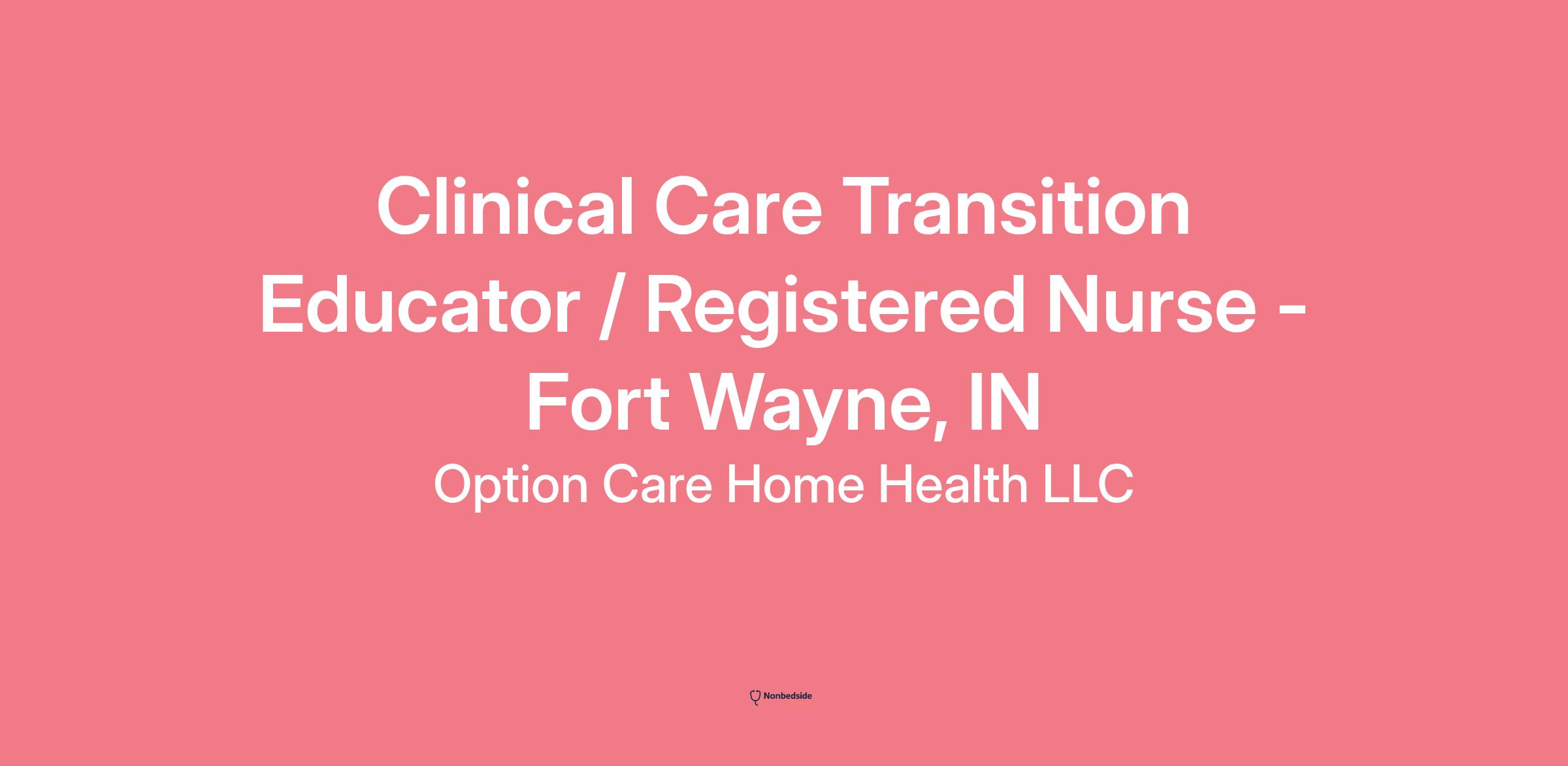 Clinical Care Transition Educator / Registered Nurse - Fort Wayne, IN