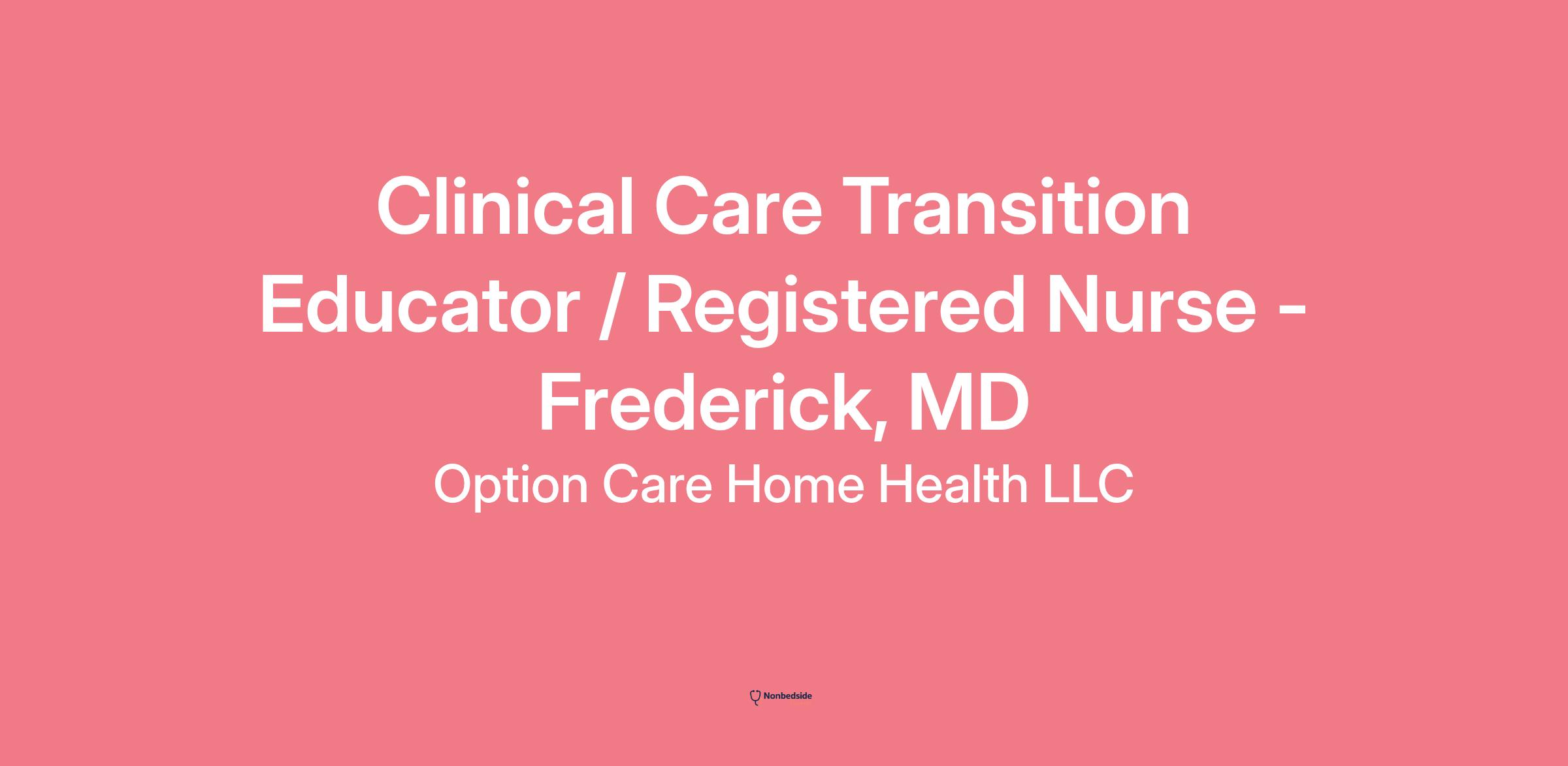Clinical Care Transition Educator / Registered Nurse - Frederick, MD