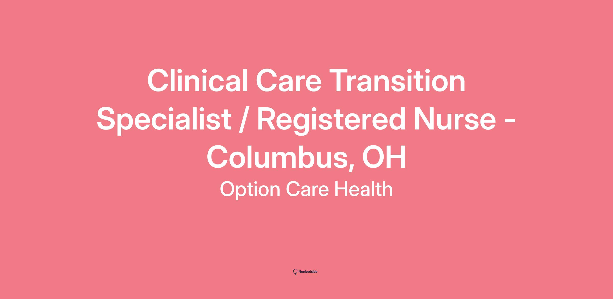 The Clinical Transition Specialist is an experienced sales professional who uses sales techniques to sell Option Care products and services to discharging patients. They are responsible for educating patients, their families and the facility staff about how the services and products will be facilitated at an alternative site. Clinical Transition Specialists ensure proper placement of patients within the Home Health Care setting by assessing patients, gathering preadmission information, collaborating with internal (intake) and external (case managers, discharge planners) partners to ensure quality of service and implementation of an effective treatment plan. Clinical Transition Specialists are also responsible for proactively building strong relationships with referral sources and partnering with Account Managers to grow referral rates and achieve sales goals.