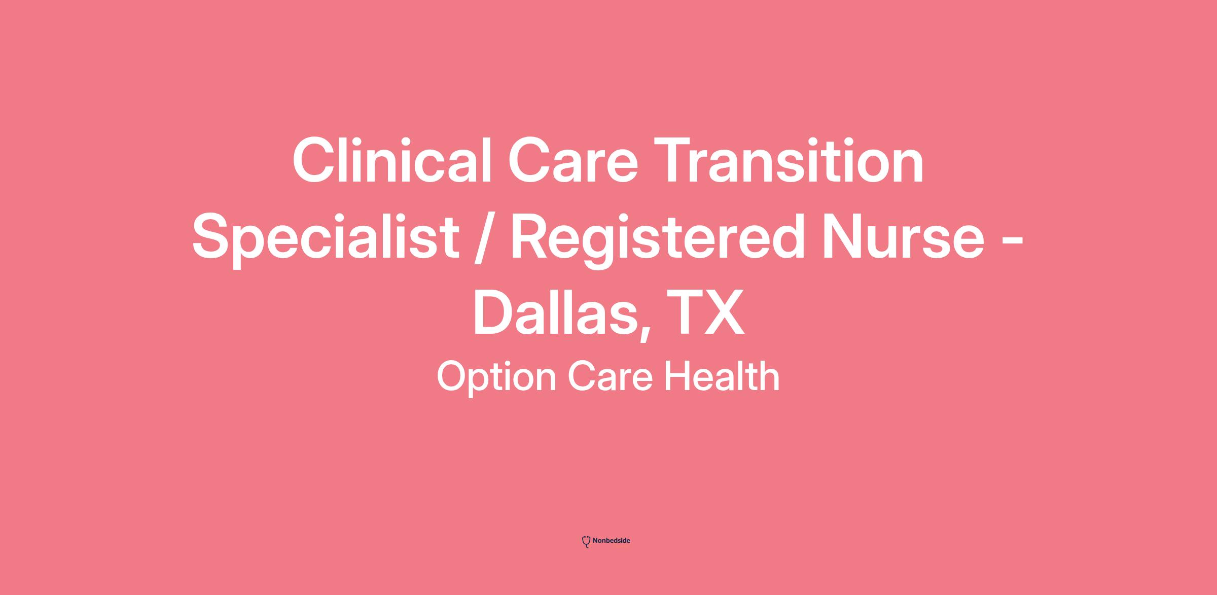 Clinical Care Transition Specialist / Registered Nurse - Dallas, TX