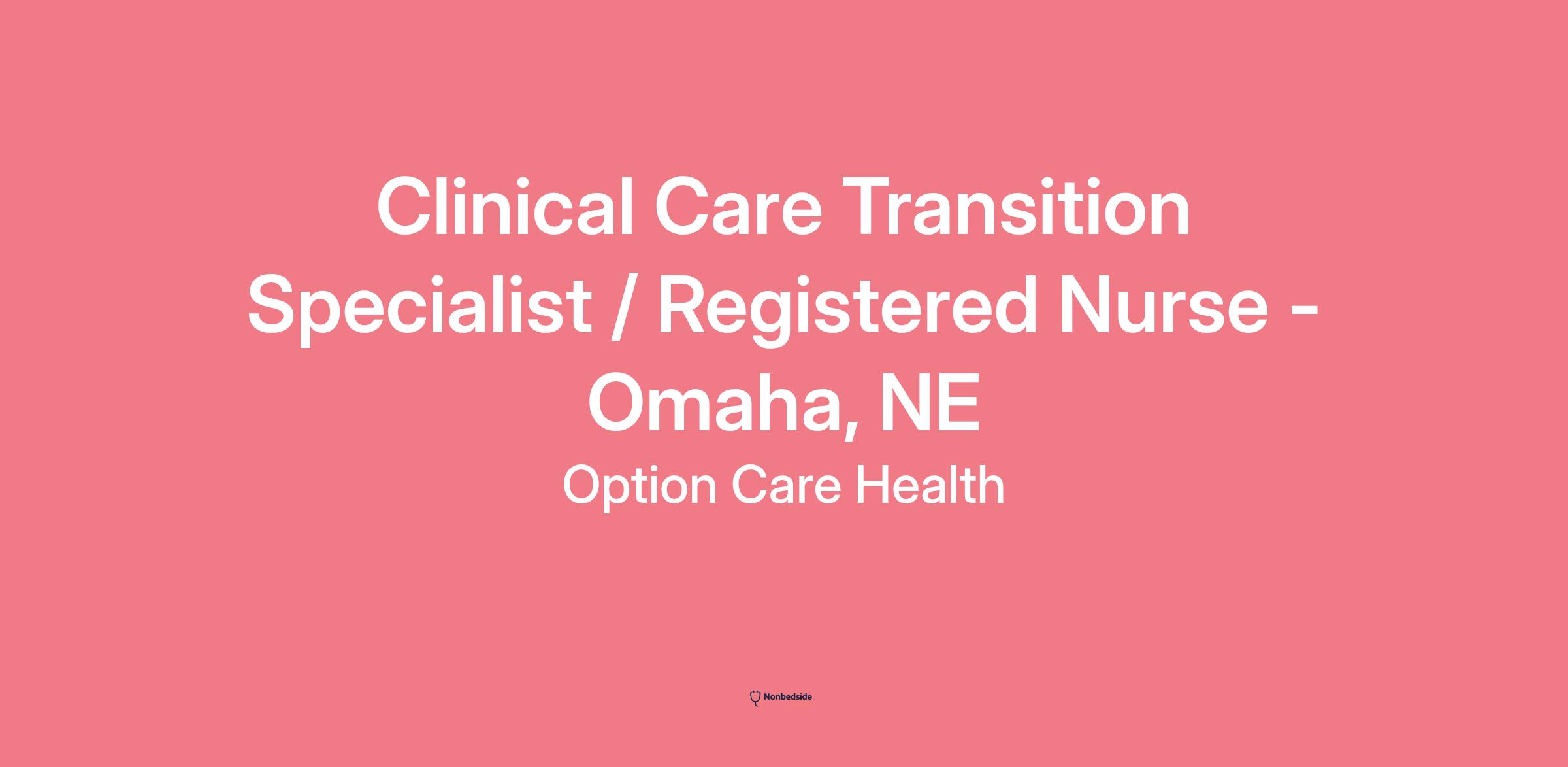 The Clinical Transition Specialist is an experienced sales professional who uses sales techniques to sell Option Care products and services to discharging patients. They are responsible for educating patients, their families and the facility staff about how the services and products will be facilitated at an alternative site. Clinical Transition Specialists ensure proper placement of patients within the Home Health Care setting by assessing patients, gathering preadmission information, collaborating with internal (intake) and external (case managers, discharge planners) partners to ensure quality of service and implementation of an effective treatment plan. Clinical Transition Specialists are also responsible for proactively building strong relationships with referral sources and partnering with Account Managers to grow referral rates and achieve sales goals.