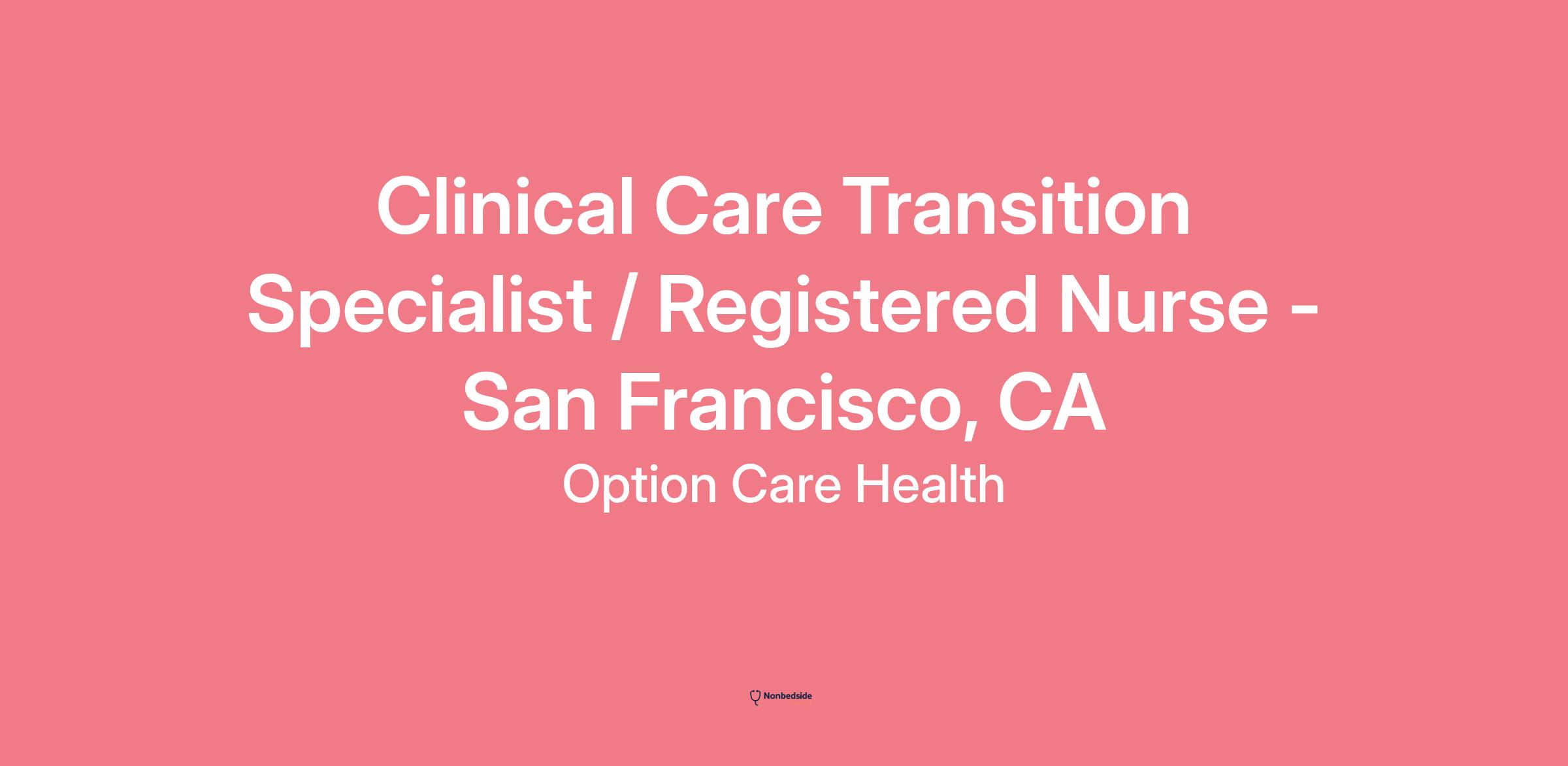 The Clinical Transition Specialist is an experienced sales professional who uses sales techniques to sell Option Care products and services to discharging patients. They are responsible for educating patients, their families and the facility staff about how the services and products will be facilitated at an alternative site. Clinical Transition Specialists ensure proper placement of patients within the Home Health Care setting by assessing patients, gathering preadmission information, collaborating with internal (intake) and external (case managers, discharge planners) partners to ensure quality of service and implementation of an effective treatment plan. Clinical Transition Specialists are also responsible for proactively building strong relationships with referral sources and partnering with Account Managers to grow referral rates and achieve sales goals.