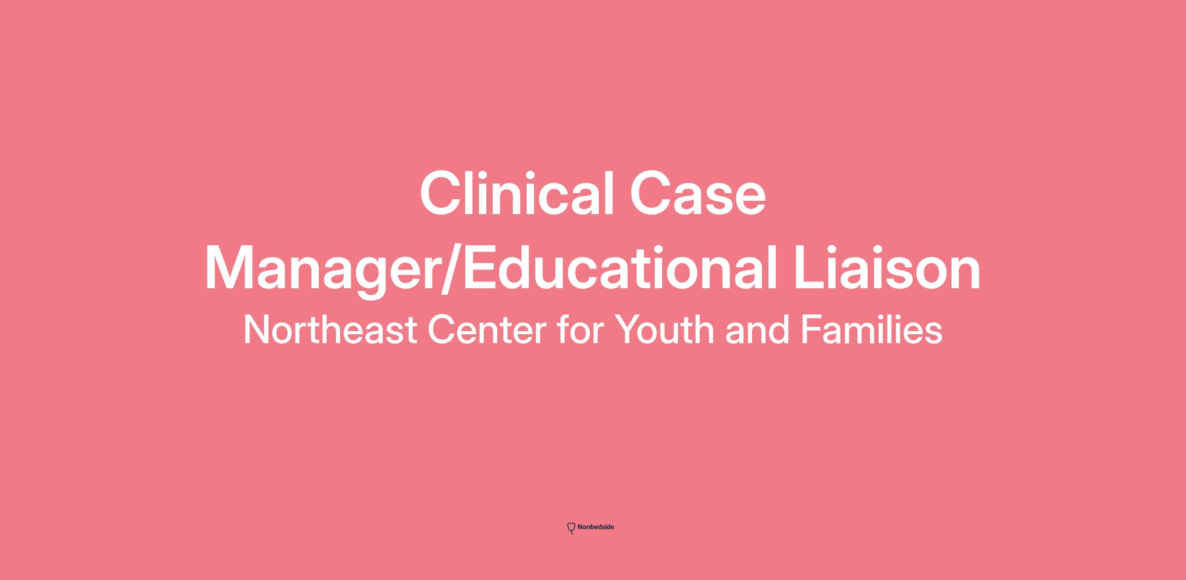 Northeast Center for Youth and Families, Inc. has an opening for two full-time Clinical Case Manager/Educational Liaisons (CCM) in Residential Services who will focus on clinical, collateral case management, ongoing assessments, and aftercare. The CCM will also act as the Educational Liaison to support the youths' learning and to ensure their IEPs are comprehensive and meeting their needs in the school environment. The CCM will act as an advocate for the youth in the educational setting. Availability during school hours, attending school meetings, and being available during afterschool hours to establish relationships with students and provide for needs that emerge is required as well as after hours on-call support to the programs.