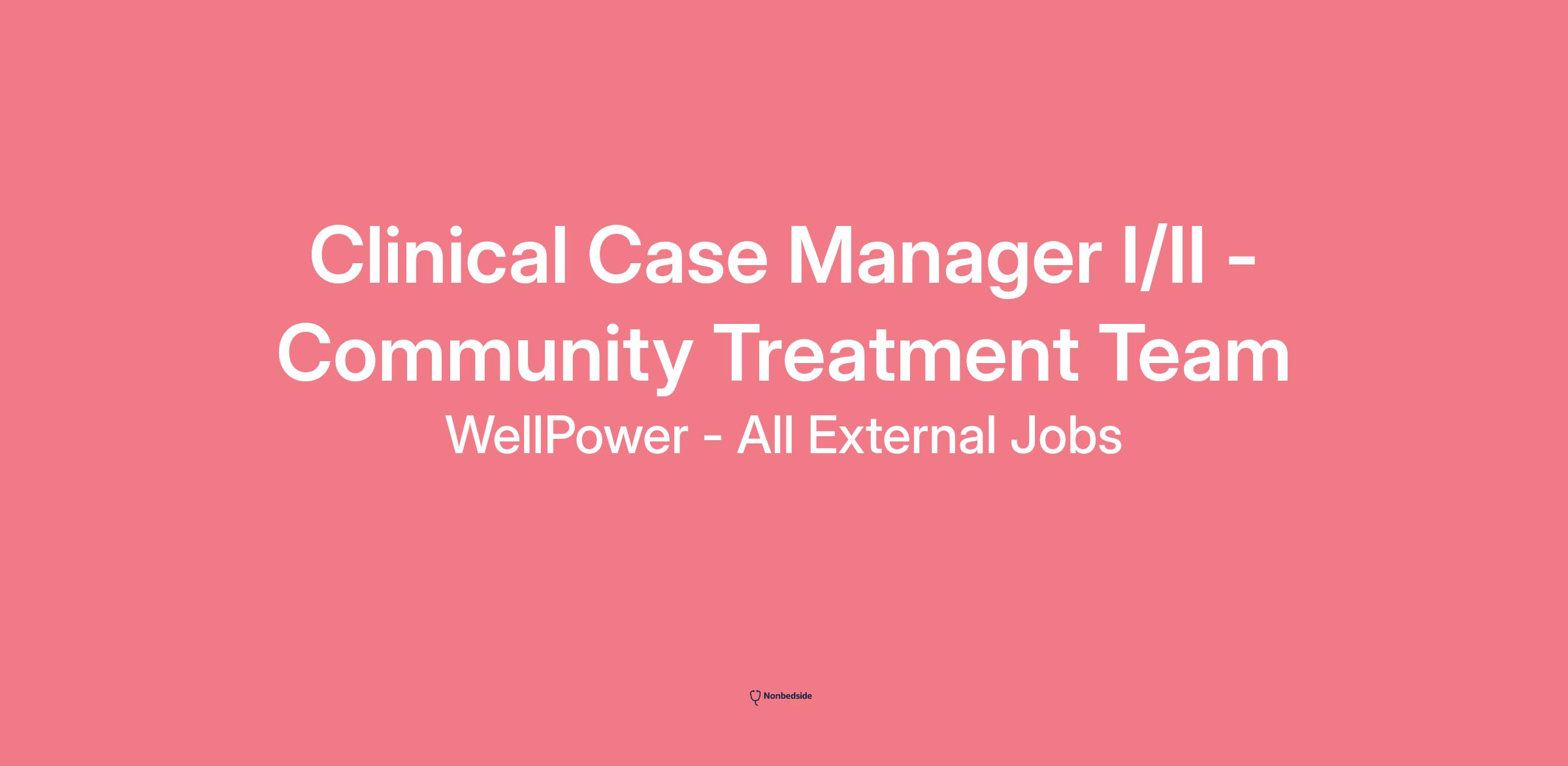 Clinical Case Manager I/II - Community Treatment Team Wellpower provides you with the support you need to help you develop a career in helping others succeed. We innovate, adapt, and leverage the diverse perspectives of the people on our team and the people we serve in everything we do.