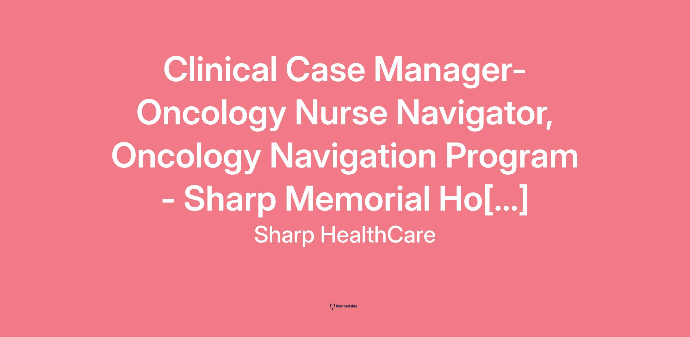 What You Will Do The Clinical Case Manager's (CCM) role is to be a patient advocate providing patients and their families with a point of care approach, and guiding them through the healthcare system providing information regarding services, education, funding and access to care. The Case Manager ensures service access and meets community care needs through quality assessment, triage, service delivery, and care coordination of clinical services between key external constituencies and Sharp. To represent the Sharp Health Care continuum to the public and health care community improving service linkages, maximizing care continuity and satisfaction. To support the Sharp HealthCare system in multi-service referral, program development, and quality care management. The CCM will develop strong relationships with physicians, their office staff, community clinics and healthcare providers to assure that there are multiple options for patients and are provided excellent care. The Clinical Case Manager will be responsible for collecting data regarding patient referrals, quality outcomes and reporting to oversight committees and organizations. The primary purpose of the CCM is to reduce anxiety and frustration with coordinating care and improve patient satisfaction with the health care systems. The Case Manager will facilitate more efficient and cost effective use of health care resources.