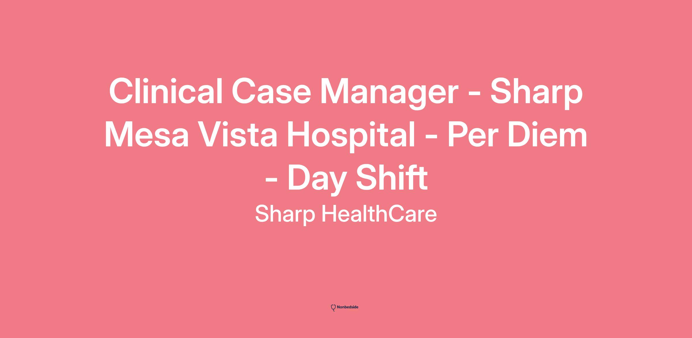 Sharp HealthCare is an equal opportunity/affirmative action employer. All qualified applicants will receive consideration for employment without regard to race, religion, color, national origin, gender, gender identity, sexual orientation, age, status as a protected veteran, among other things, or status as a qualified individual with disability or any other protected class.