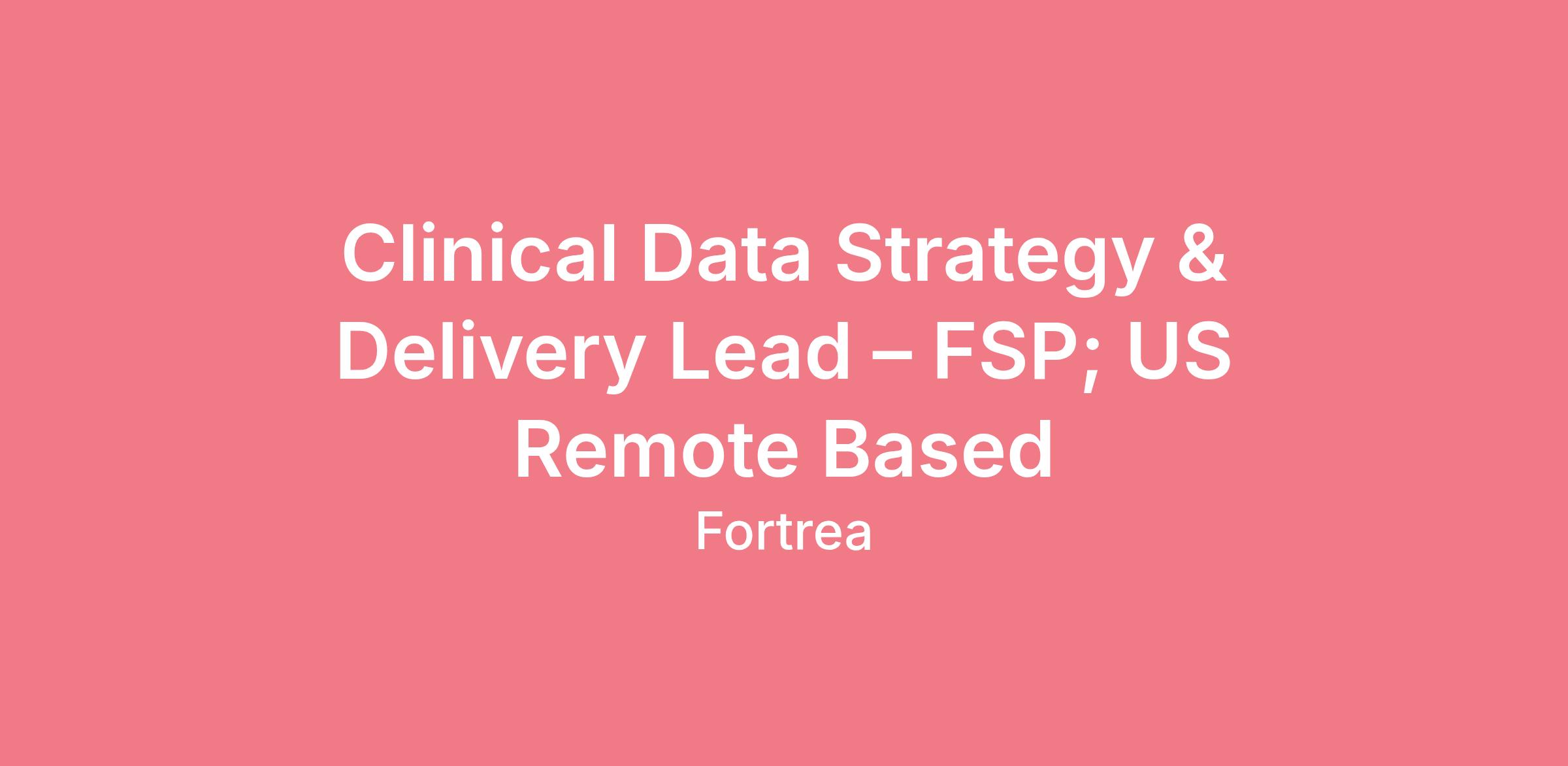 Fortrea is currently seeking a US remote based Clinical Data Strategy & Delivery Lead – FSP to drive and support process development.