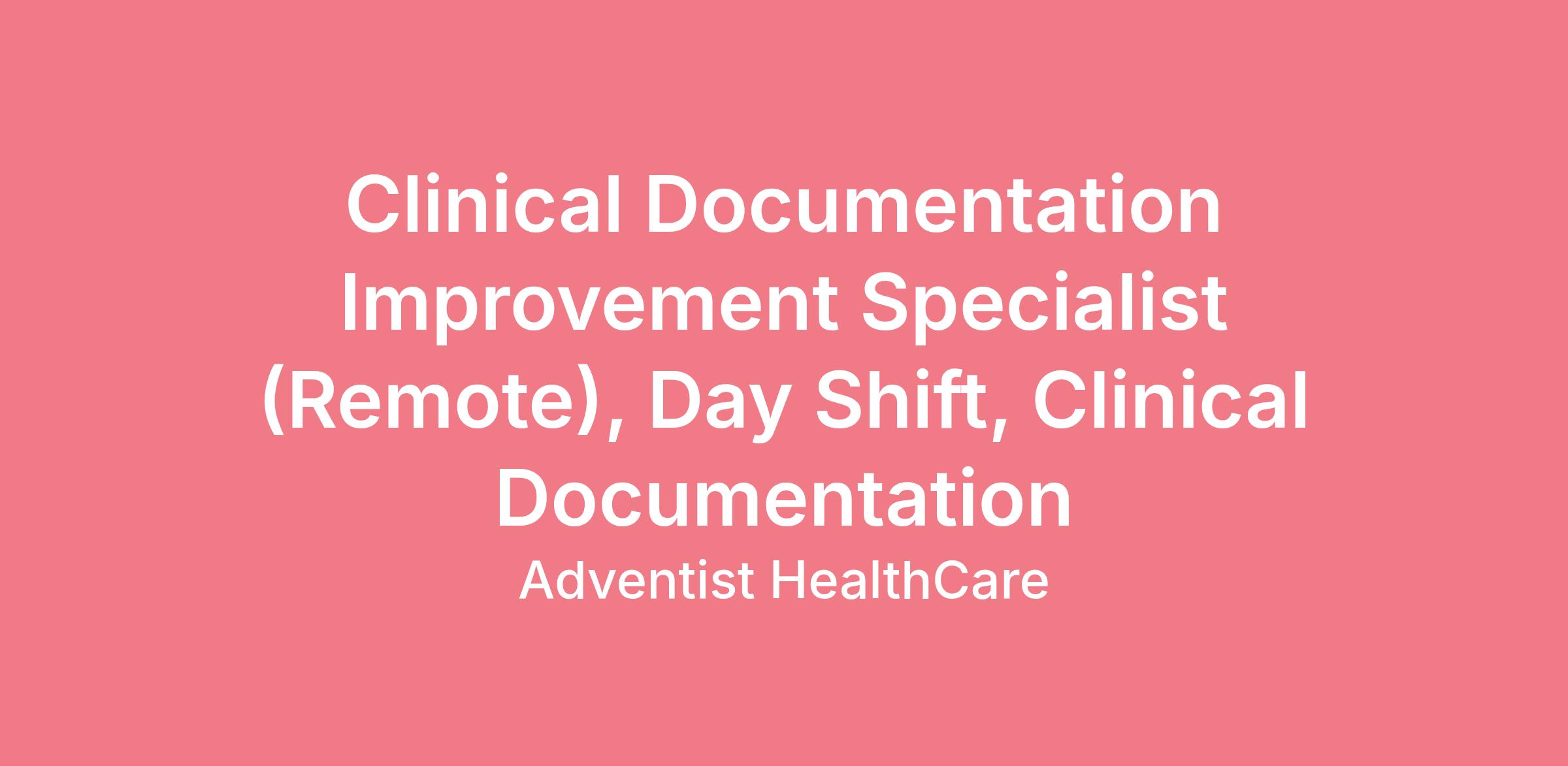 Clinical Documentation Improvement Specialist (Remote), Day Shift, Clinical Documentation