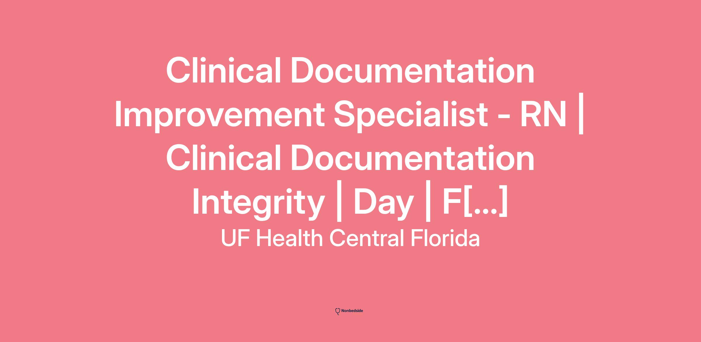 Join to apply for the Clinical Documentation Improvement Specialist - RN role at UF Health Central Florida.