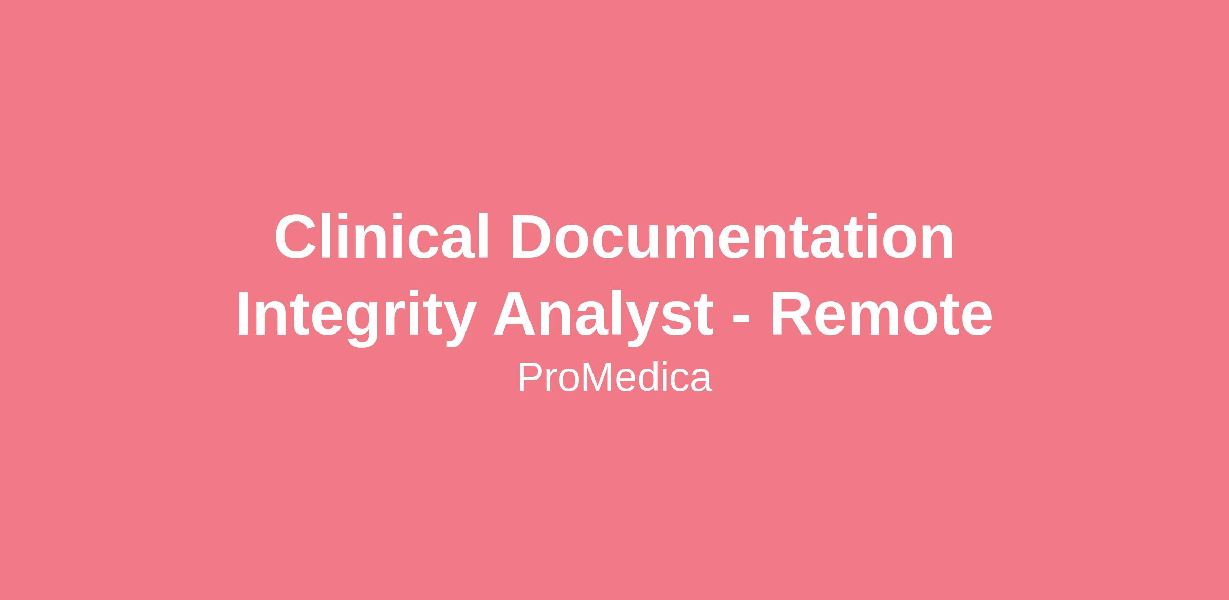 As the Clinical Documentation Integrity Analyst, you are a resource for internal customers and clinical staff for ProMedica’s Clinical Documentation Integrity program.