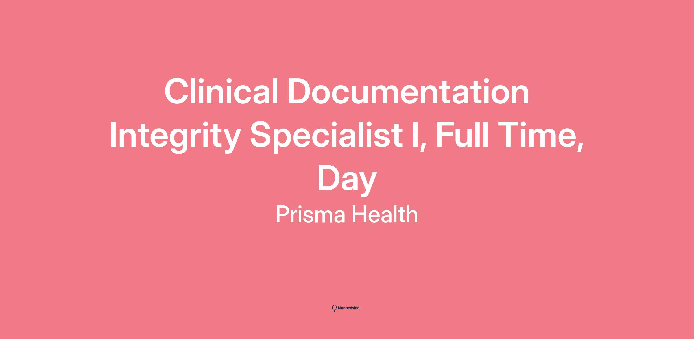 Join to apply for the Clinical Documentation Integrity Specialist I, Full Time, Day role at Prisma Health.