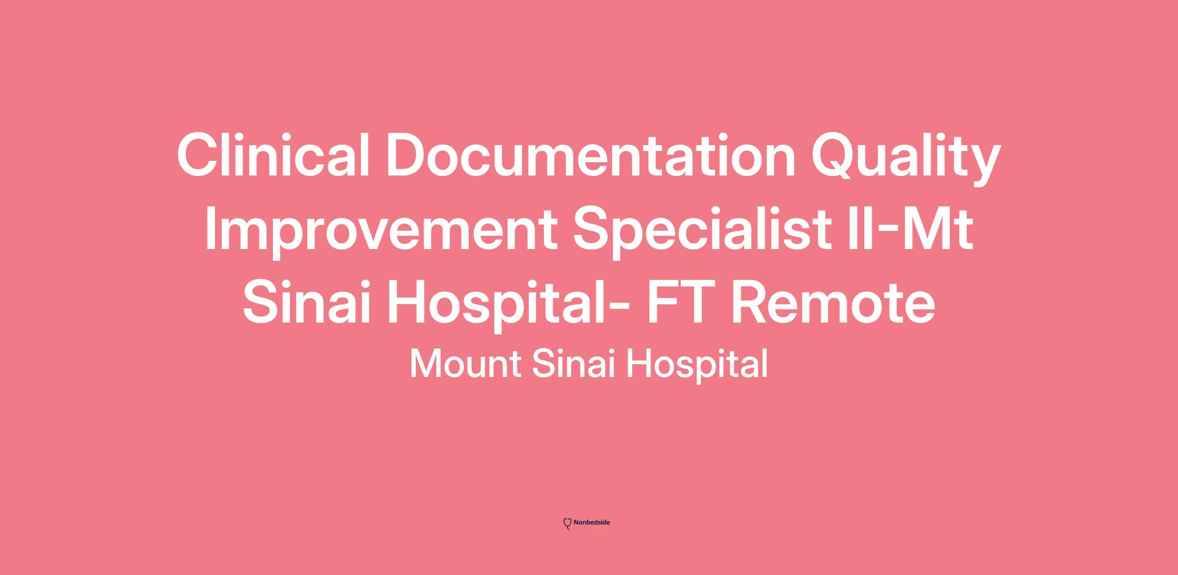 The Clinical Documentation Quality Improvement Specialist II is responsible for improving the overall quality and completeness of clinical documentation; facilitates modifications to clinical documentation through extensive interaction with physicians, nursing staff, other patient caregivers, and medical records coding staff to ensure that documentation reflects complete and accurate level of service rendered to patients.