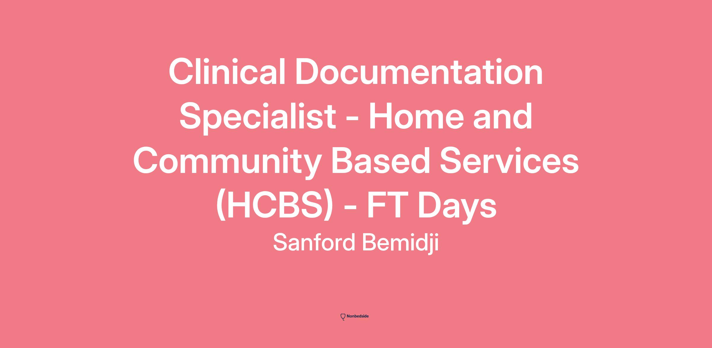 # Careers With PurposeClinical Documentation Specialist - Home and Community Based Services (HCBS) - FT Days page is loaded## Clinical Documentation Specialist - Home and Community Based Services (HCBS) - FT Dayslocations: SD, City - Remote SDtime type: Full timeposted on: Posted Todayjob requisition id: R-0238169**Sanford Health is one of the largest and fastest-growing not-for-profit health systems in the United States. We’re proud to offer many development and advancement opportunities to our nearly 50,000 members of the Sanford Family who are dedicated to the work of health and healing across our broad footprint.**Work Shift:8 Hours - Day Shifts (United States of America)Scheduled Weekly Hours:40Salary Range: $27.50 - $44**Union Position:**No**Department Details**Remote work, flexible work environment. No weekends.**Summary**The Clinical Documentation Specialist (CDS) communicates with providers, case managers, coders, and other healthcare team members to facilitate comprehensive medical record documentation to reflect clinical treatment, decisions, and diagnoses for patients.**Job Description**This CDS position codes and reviews home health documentation. It utilizes the organization's designated clinical documentation system to identify opportunities for physician and hospital outcomes, provides or coordinates education to all internal customers related to compliance, coding, and clinical documentation issues and acts as a consultant to coders when additional information or documentation is needed to assign the correct diagnosis related group (DRG). Responsible for the day-to-day evaluation of documentation by the medical staff and healthcare team, and gathers and analyzes information pertinent to documentation findings and outcomes. Contributes to a positive working environment and performs other duties as assigned or directed to enhance the overall efforts of the organization. Must possess advanced communication and interpersonal skills with all levels of internal and external customers. Demonstrate excellent written/verbal communication, critical thinking, creative problem solving, and conflict management skills. Proficient in organization and planning. Possess strong computer skills including the use of spreadsheets, presentation programs, word processing, and Internet searching. Also demonstrates working knowledge of quality improvement theory and practice. Maintains working knowledge of DRGs and understanding of medical necessity process. Knowledgeable of federal, state, and other payers' regulations, requirements, and criteria. Adheres to ethical and professional business practices, such as the Association of Clinical Documentation Improvement Specialists (ACDIS) code of ethics and official coding guidelines. Utilizes the appropriate professional documentation to support daily processes, including white papers published by ACDIS, American Health Information Management Association (AHIMA), and other professional organizations. May perform record reviews on clients in all age groups. Coordinates, facilitates, and negotiates with others. Controls variances and duplication. Must work closely with ancillary and support services. Ability to document clearly. Ability to solve problems. Ability to facilitate groups and implement projects when necessary. Functions within the scope and standards of nursing practice as outlined in the Nurse Practice Act and Administrative Rules in state of practice and licensure. The Professional Nursing Practice recognizes the Scope and Standards of Practice and the Code of Ethics for Nurses with Interpretive Statements as published by the American Nurses Association as the foundation of nursing care delivery and professional conduct. HCS-D coding certification experience required. Current OASIS certification required. Home Health experience is a must. EMR: Homecare Homebase and Epic experience preferred.**Qualifications**If working in any service line other than Home Based Services (HBS): Bachelor’s degree in nursing required. Graduate from a nationally accredited nursing program preferred, including, but not limited to, Commission on Collegiate Nursing Education (CCNE), Accreditation Commission for Education in Nursing (ACEN), and National League for Nursing Commission for Nursing Education Accreditation (NLN CNEA). If no degree, will consider seven years equivalent work experience. Additionally, three years of recent clinical nursing experience required. Experience in case management, utilization management, and/or coding preferred. If working in any service line other than Home Based Services (HBS): Currently holds an unencumbered RN license with the State Board of Nursing where the practice of nursing is occurring and/or possess multistate licensure if in a Nurse Licensure Compact (NLC) state. Obtains and subsequently maintains required department specific competencies and certifications. Certification in Clinical Documentation Specialist (CCDS) or Clinical Documentation Improvement and Integrity (C-CDI) preferred. Quality improvement/assurance personnel with nursing backgrounds can maintain their license without seeking additional hours based on role’s responsibilities.**Sanford is an EEO/AA Employer M/F/Disability/Vet.****If you are an individual with a disability and would like to request an accommodation for help with your online application, please call 1-877-673-0854 or send an email to talent@sanfordhealth.org.**