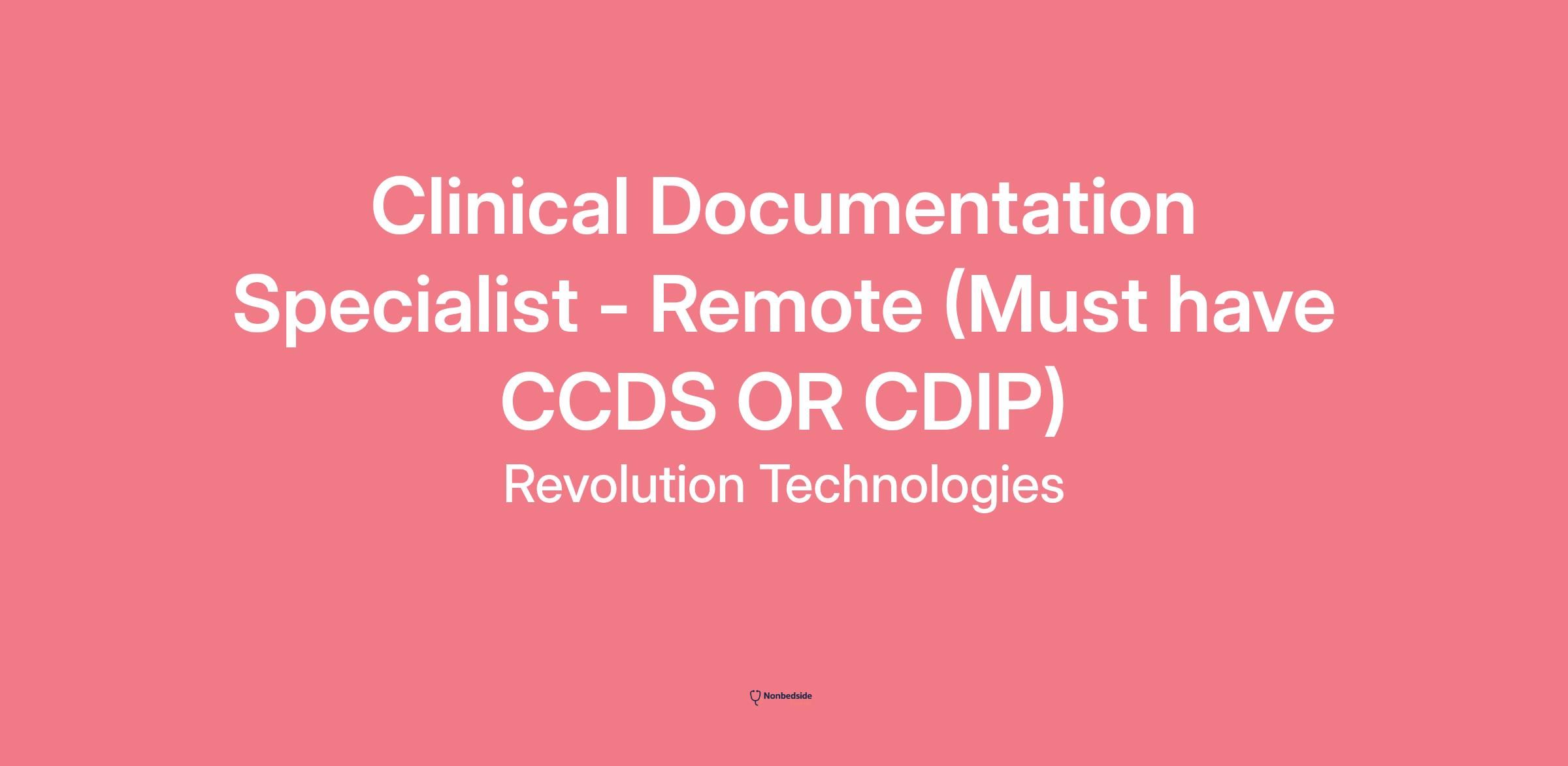 Clinical Documentation Specialist - Remote (Must have CCDS OR CDIP)