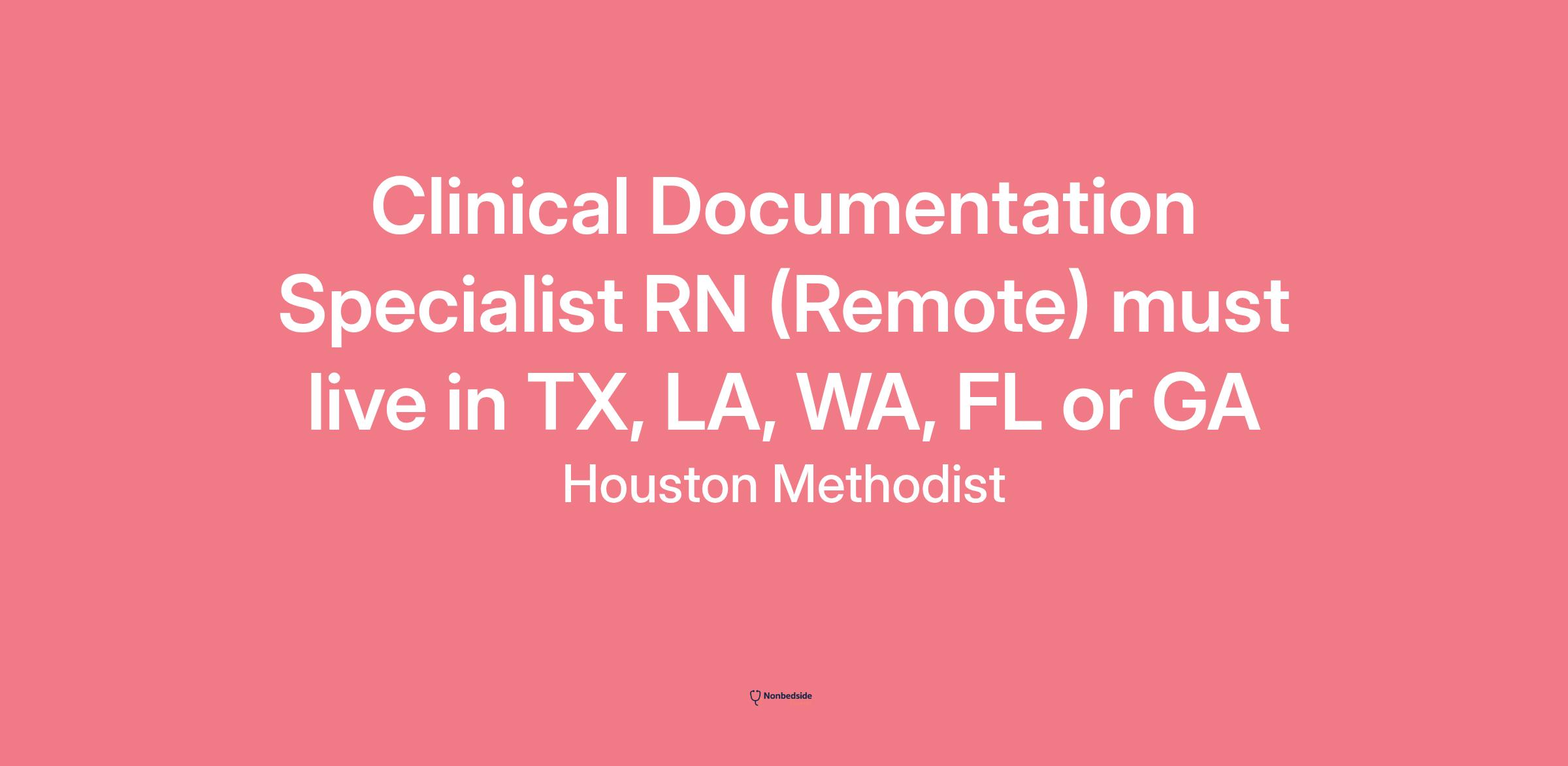Houston Methodist is hiring a Clinical Documentation Specialist (Remote). The role requires residence in Texas, Louisiana, Washington, Florida, or Georgia.