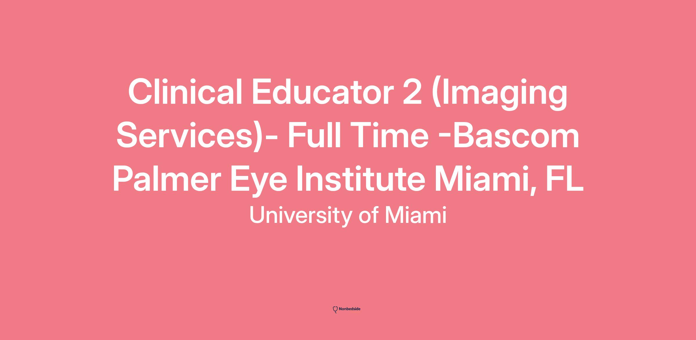 The University of Miami, Bascom Palmer Eye Institute, has an exciting full time opportunity for a Clinical Educator 2, in the Department of Ophthalmic Imaging. The Clinical Educator 2 provides clinical education to patient care staff. The incumbent is responsible for the needs and assessment, planning/development, delivery, coordination and evaluation of a clinical education program/s. Provides support to the learner community and supports ongoing initiatives.