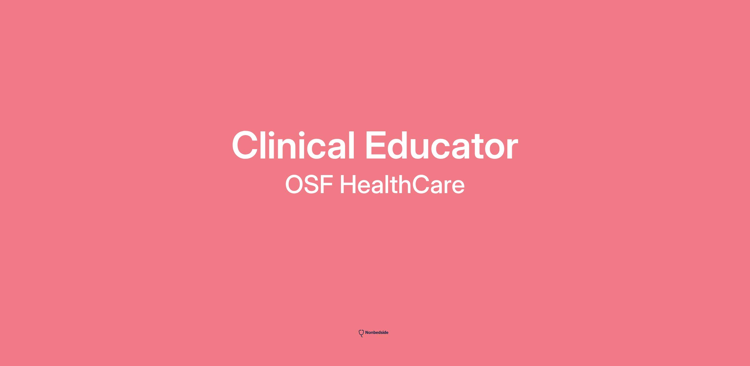 Overview POSITION SUMMARY: Clinical Educator functions autonomously and in collaboration with the health care team in clinical practice, quality and safety and leadership roles. The clinical educator is responsible for providing appropriate education, which includes assessing, planning, implementing and evaluating orientation, education, competency, and skill-building needs of OSF HealthCare employees to enhance the quality of patient care services. The clinical educator ensures such programs are based on the principle of delivering care appropriate to the patient population served using innovative, high quality education in accordance with best practice and in alignment with the strategic goals and clinical initiatives of OSF.