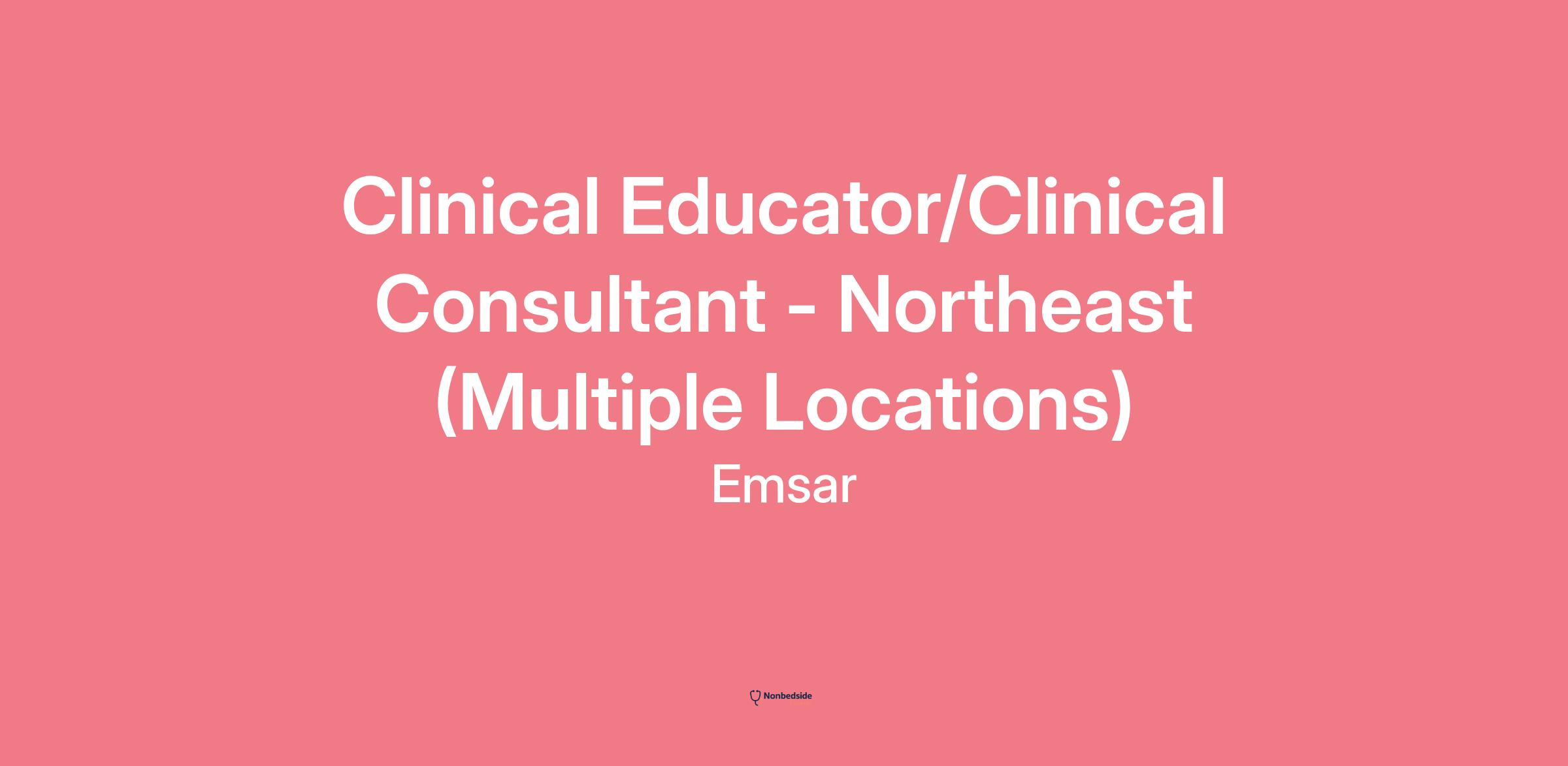 Clinical Educator/Clinical Consultant - Northeast (Multiple Locations) Join to apply for the Clinical Educator/Clinical Consultant - Northeast (Multiple Locations) role at Emsar