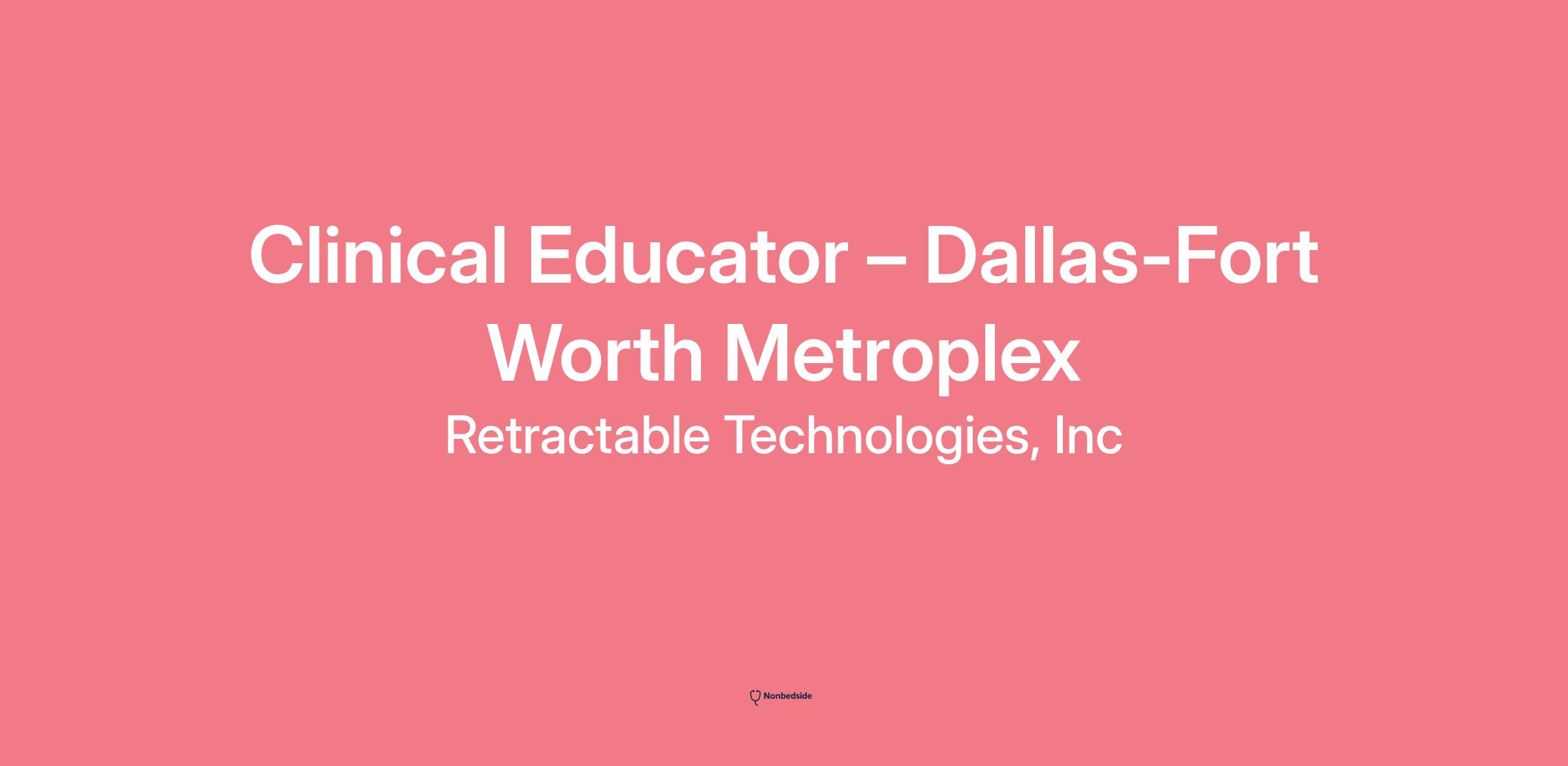 Join to apply for the Clinical Educator – Dallas‑Fort Worth Metroplex role at Retractable Technologies, Inc