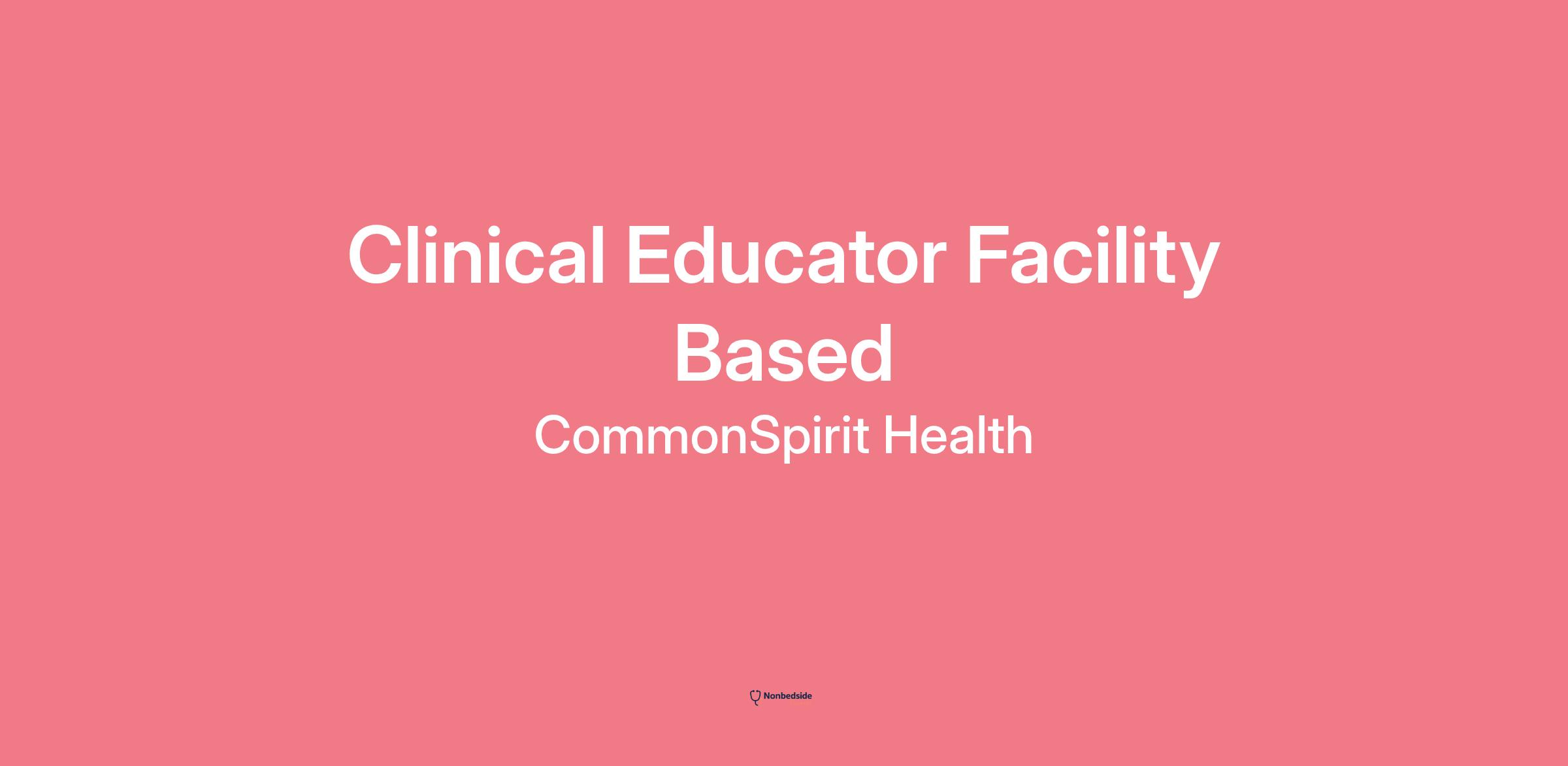 Join to apply for the Clinical Educator Facility Based role at CommonSpirit Health .