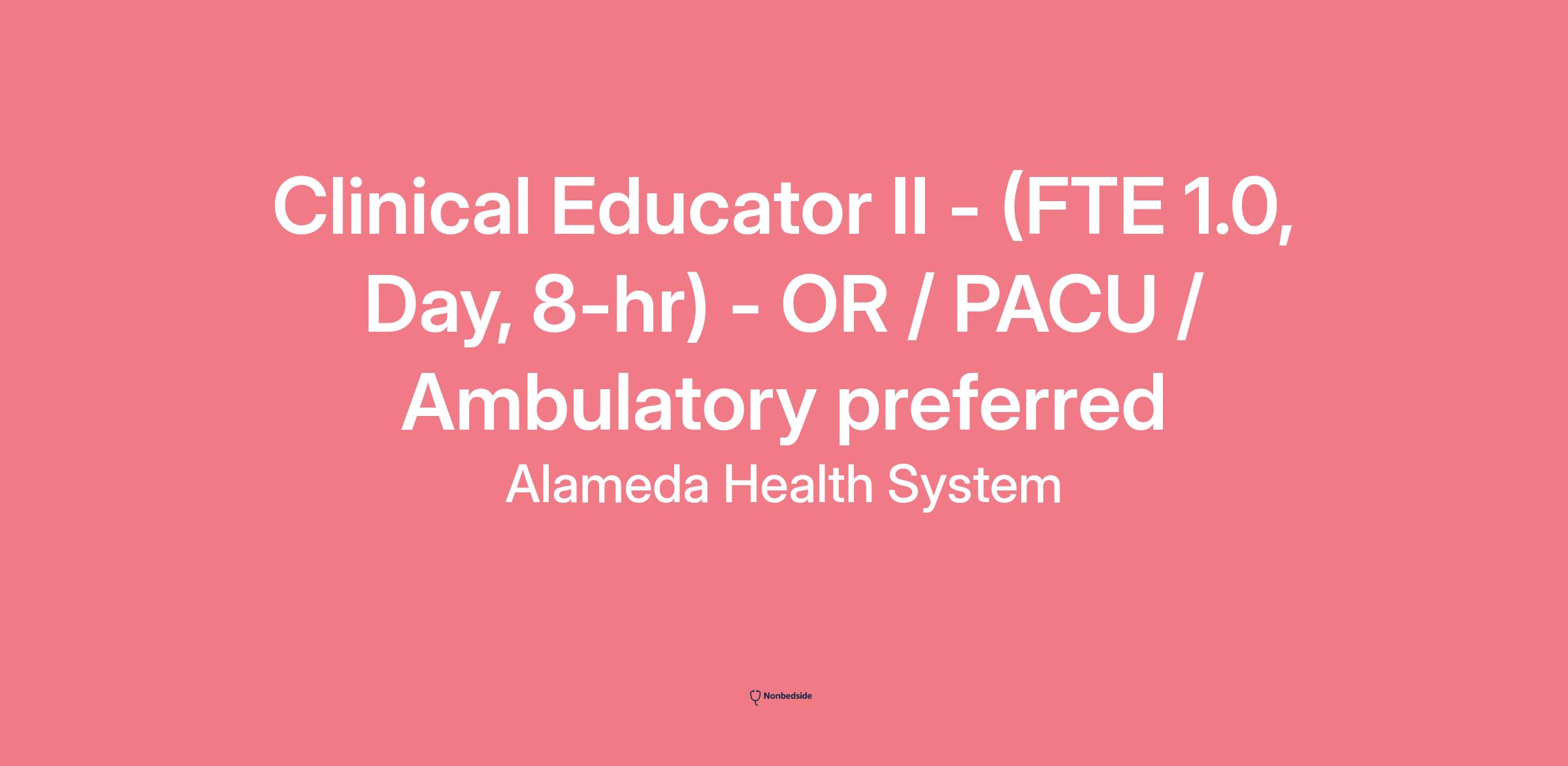 The Clinical Educator II (CE) performs educational activities that validate, develop, maintain and enhance skills and competencies relative to patient care. The CE is responsible for developing and implementing AHS Onboarding and Orientation Program, Annual Education Program, Continuing Education (CE) Courses, staff competency validation, and any ongoing educational in-services. The CE is also a resource for developing orientation and annual staff education for all levels of nursing personnel and non‑nursing personnel and providing input into the development/revision of evidence‑based policies and procedures. The CE must work effectively as a team member and must use good interpersonal skills in all contact with patients, staff and physicians. The CE works collaboratively with organizational leaders across departments in assessing, planning and implementing needs assessment, educational program, and staff competency validation for all levels of nursing personnel and non‑nursing personnel as indicated for professional development and regulatory compliance.