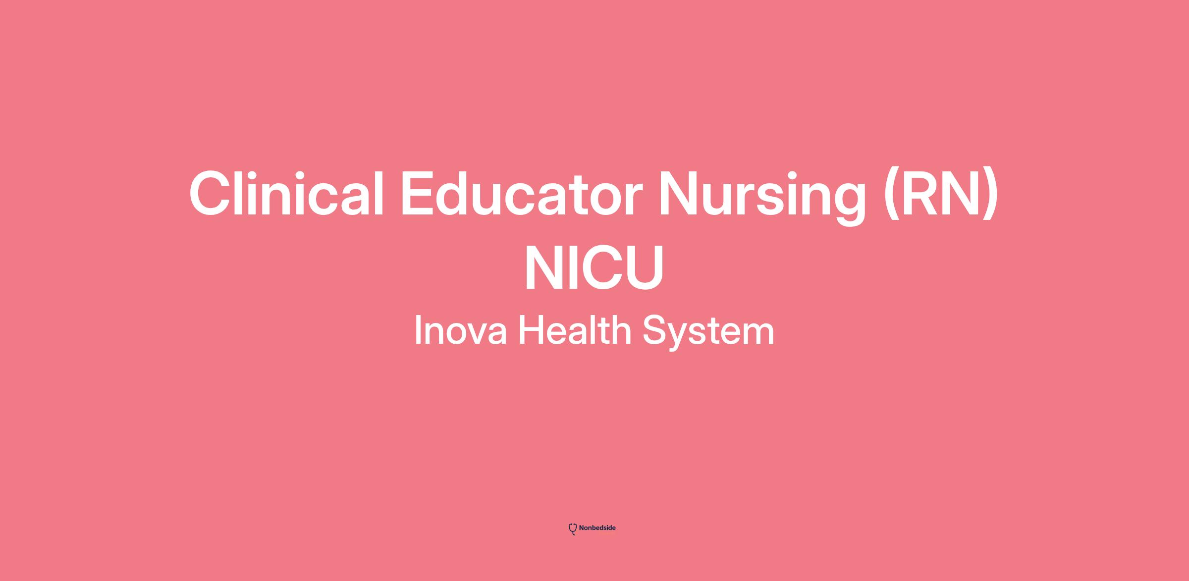 Inova Fairfax Medical Campus is looking for a RN Clinical Educator Nursing to work with the NICU. This role is full-time, M-F . Relocation assistance eligible