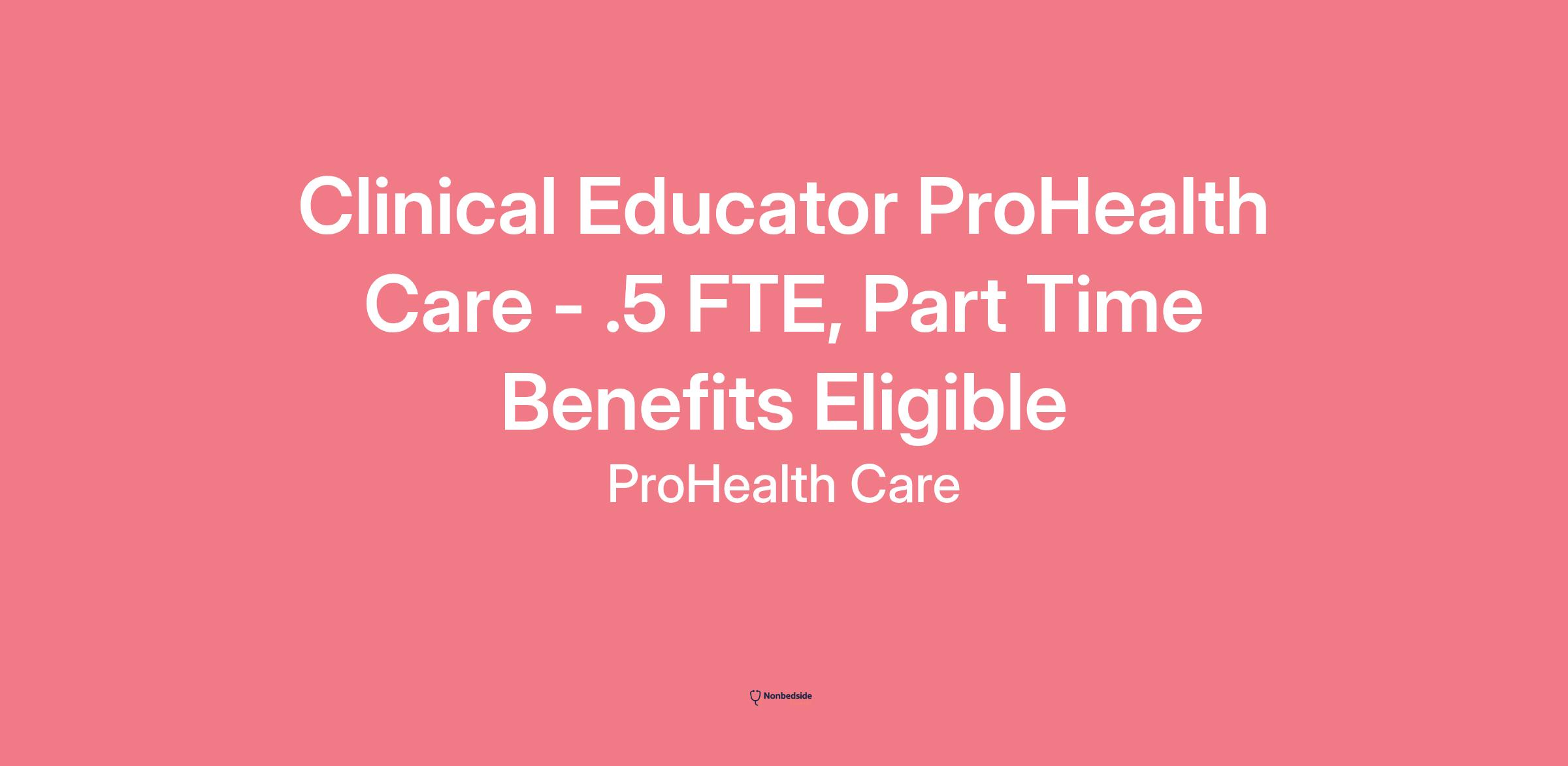 Clinical Educator – ProHealth Care (0.5 FTE, Part Time)