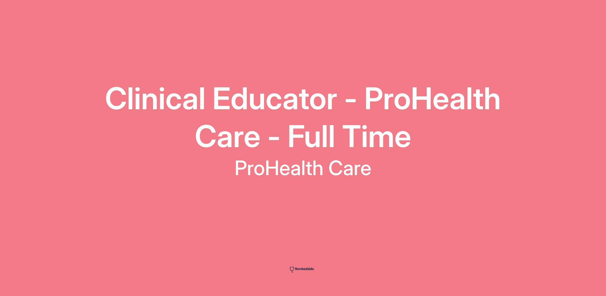 Clinical Educator - ProHealth Care - Full Time Join to apply for the Clinical Educator - ProHealth Care - Full Time role at ProHealth Care.
