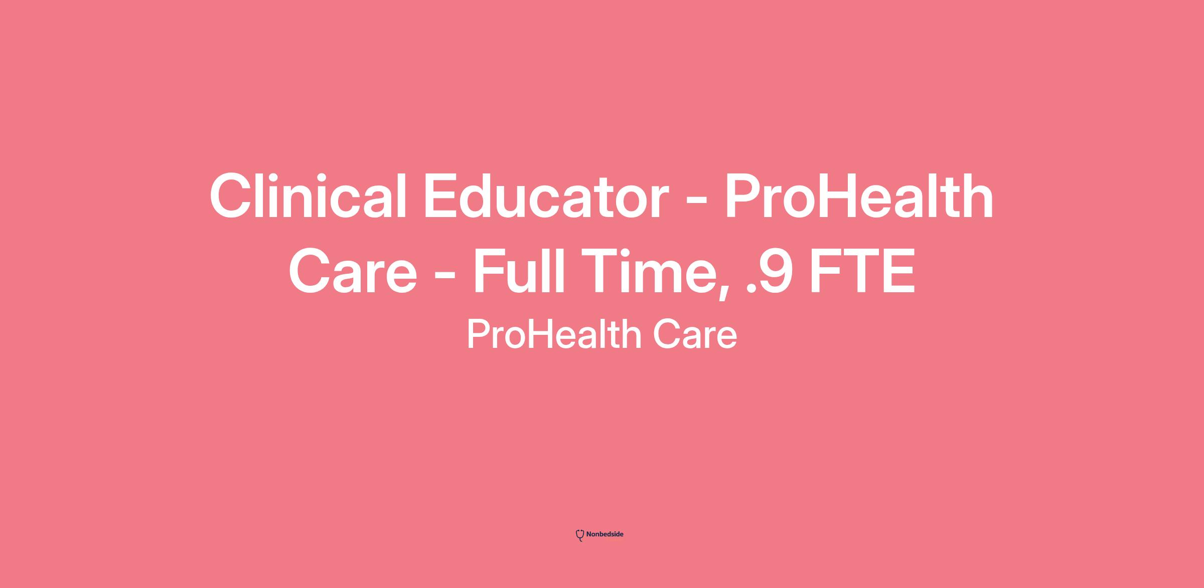 Clinical Educator - ProHealth Care - Full Time, .9 FTE Join ProHealth Care as a Clinical Educator and help shape the future of patient care across Waukesha Memorial and Oconomowoc Memorial Hospitals.