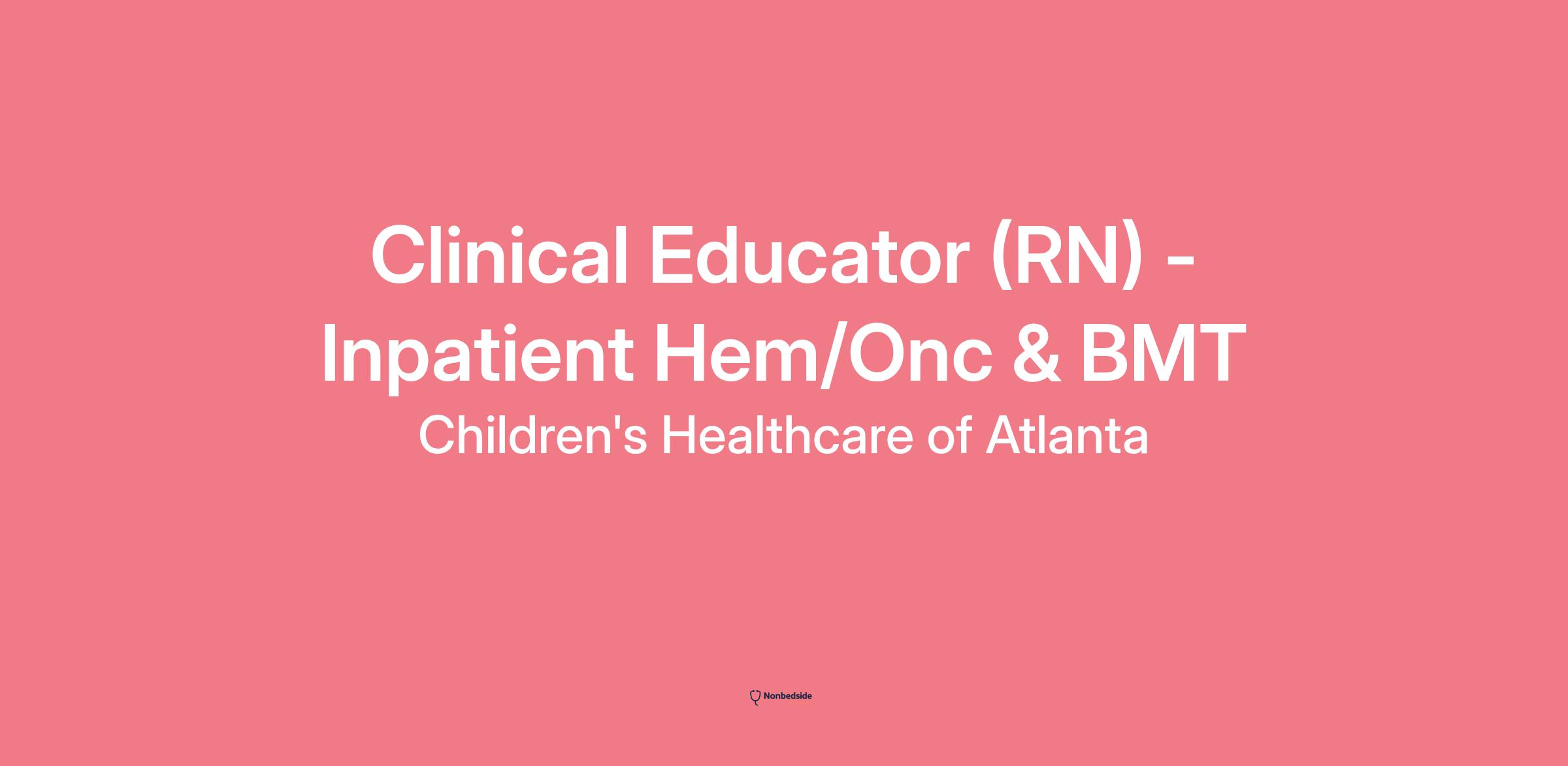 Clinical Educator (RN) - Inpatient Hem/Onc & BMT