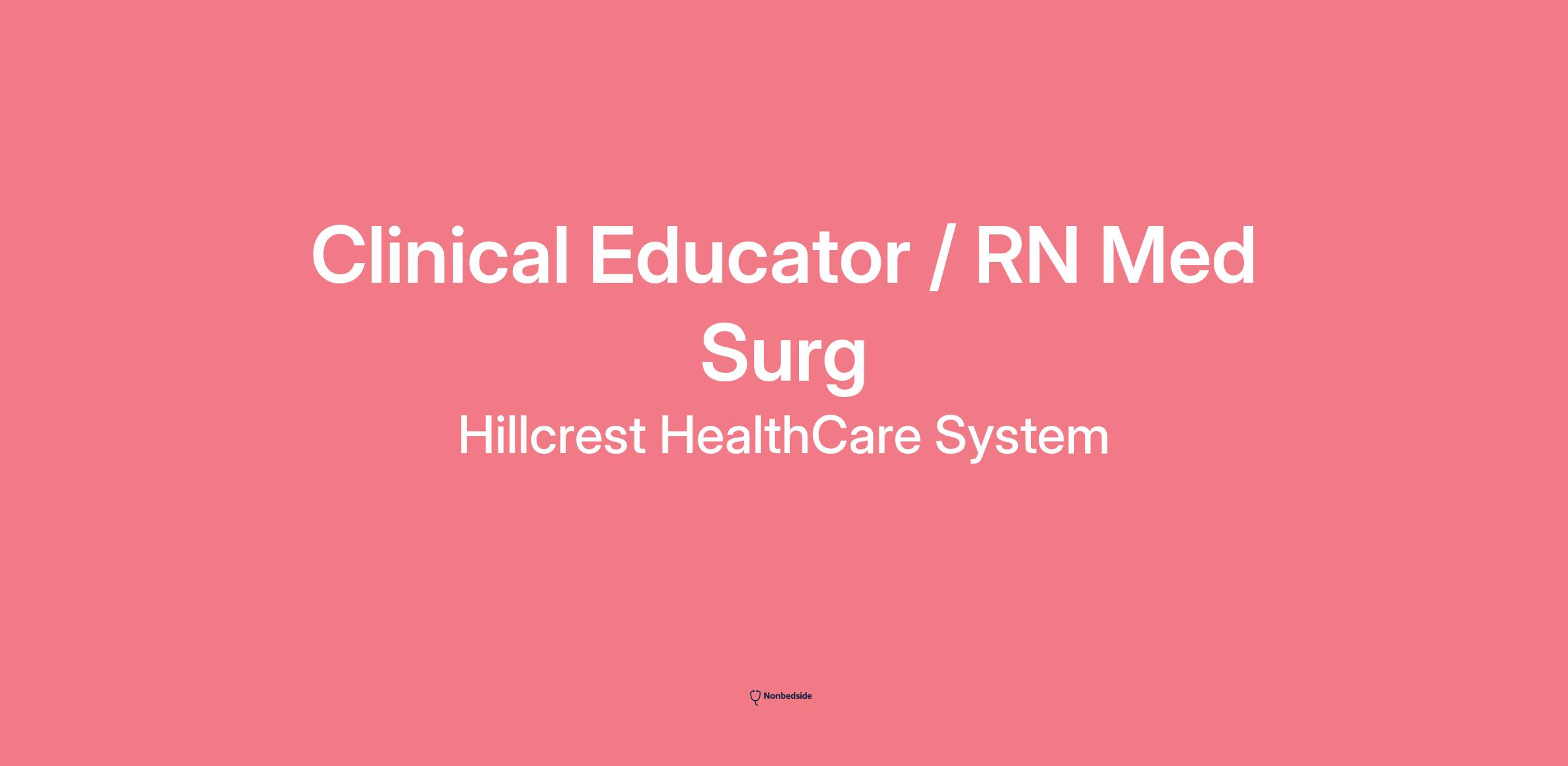 Join to apply for the Clinical Educator / RN Med Surg role at Hillcrest HealthCare System in Tulsa, OK.