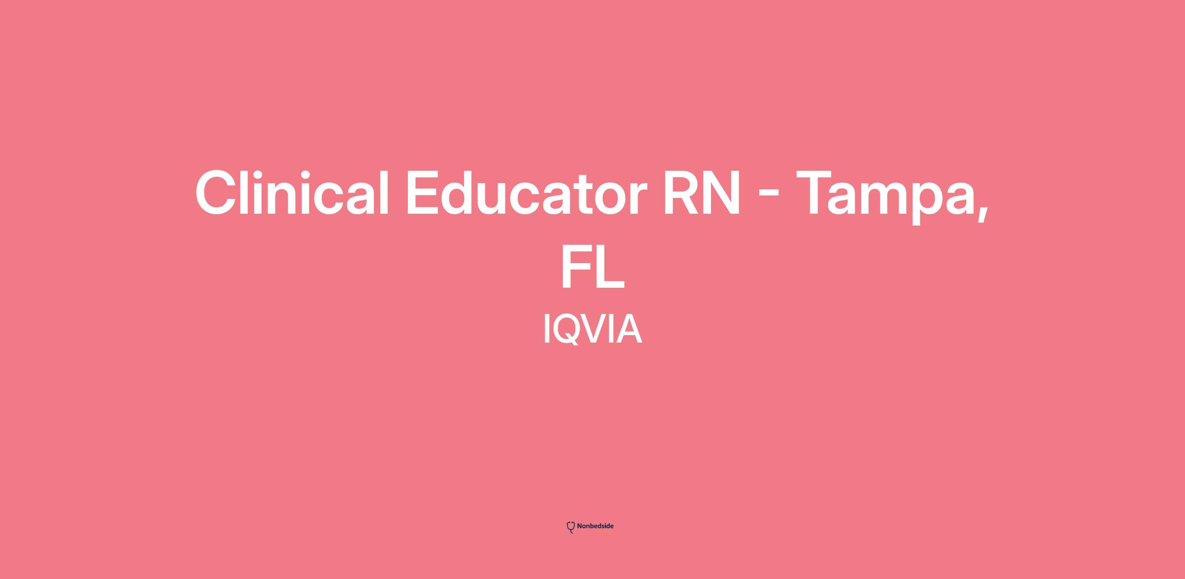 Join to apply for the Clinical Educator RN - Tampa, FL role at IQVIA .