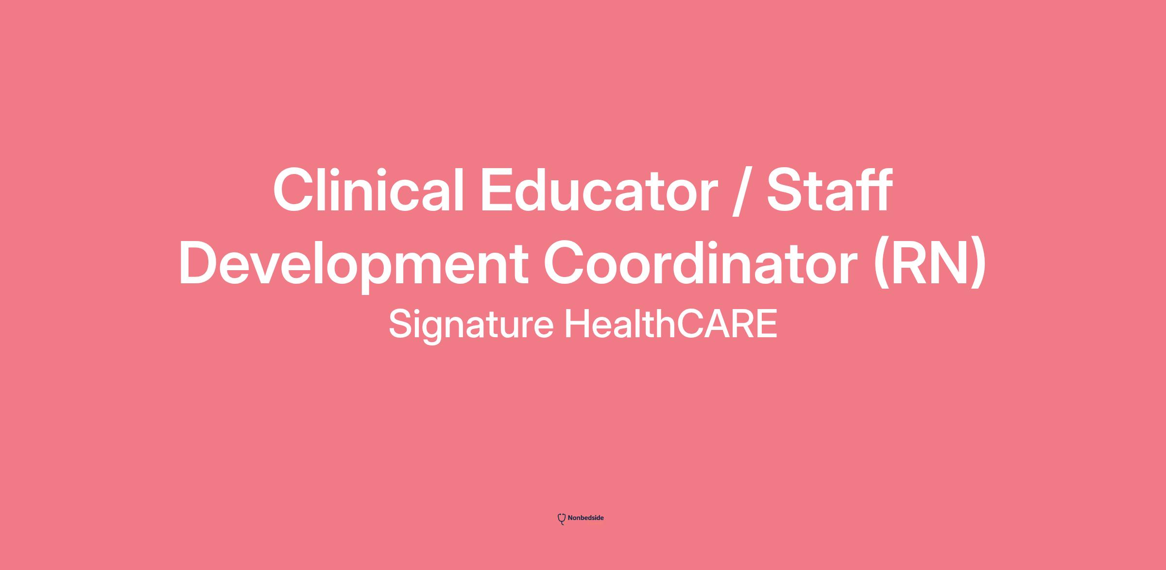 Overview Staff Development Coordinator / Educator (RN or LPN) at Signature HealthCARE in Muncie, IN. The ideal candidate is detailed-oriented with a passion for training and educating stakeholders to provide the best care possible to residents.