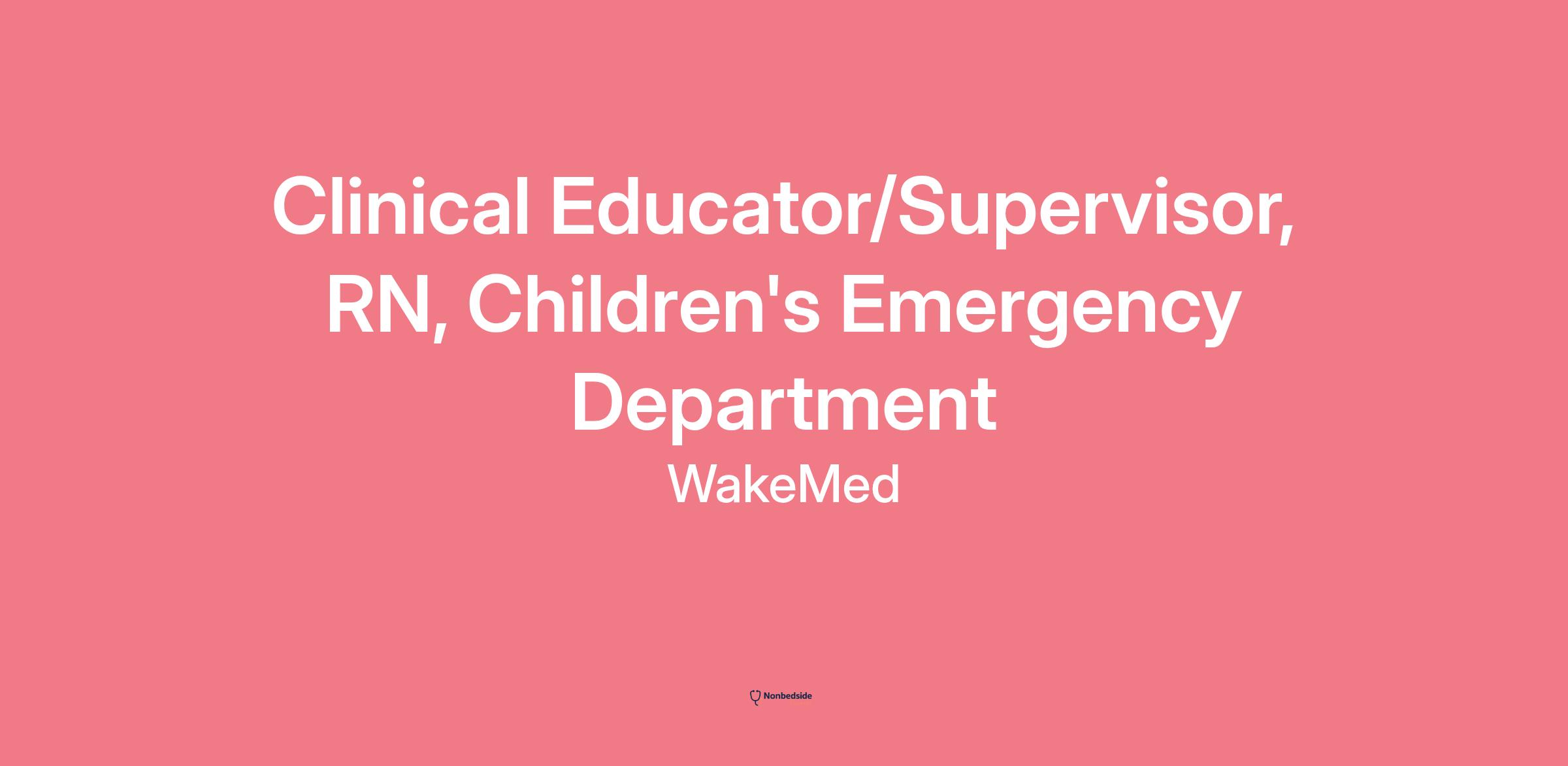 Clinical Educator/Supervisor, RN, Children's Emergency Department