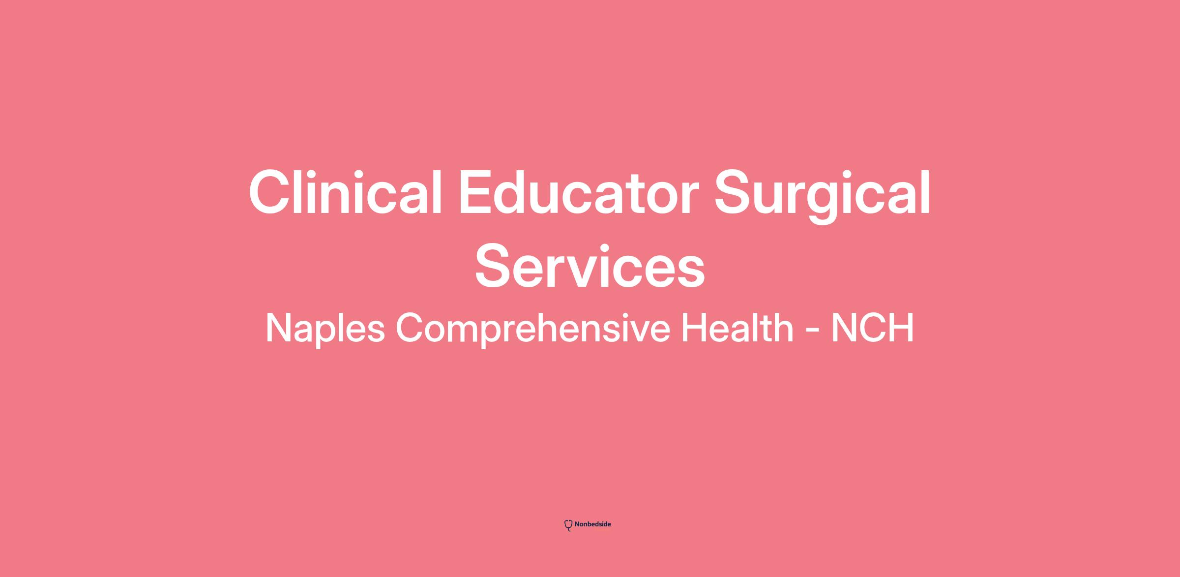 Overview Clinical Educator Surgical Services role at Naples Comprehensive Health - NCH .