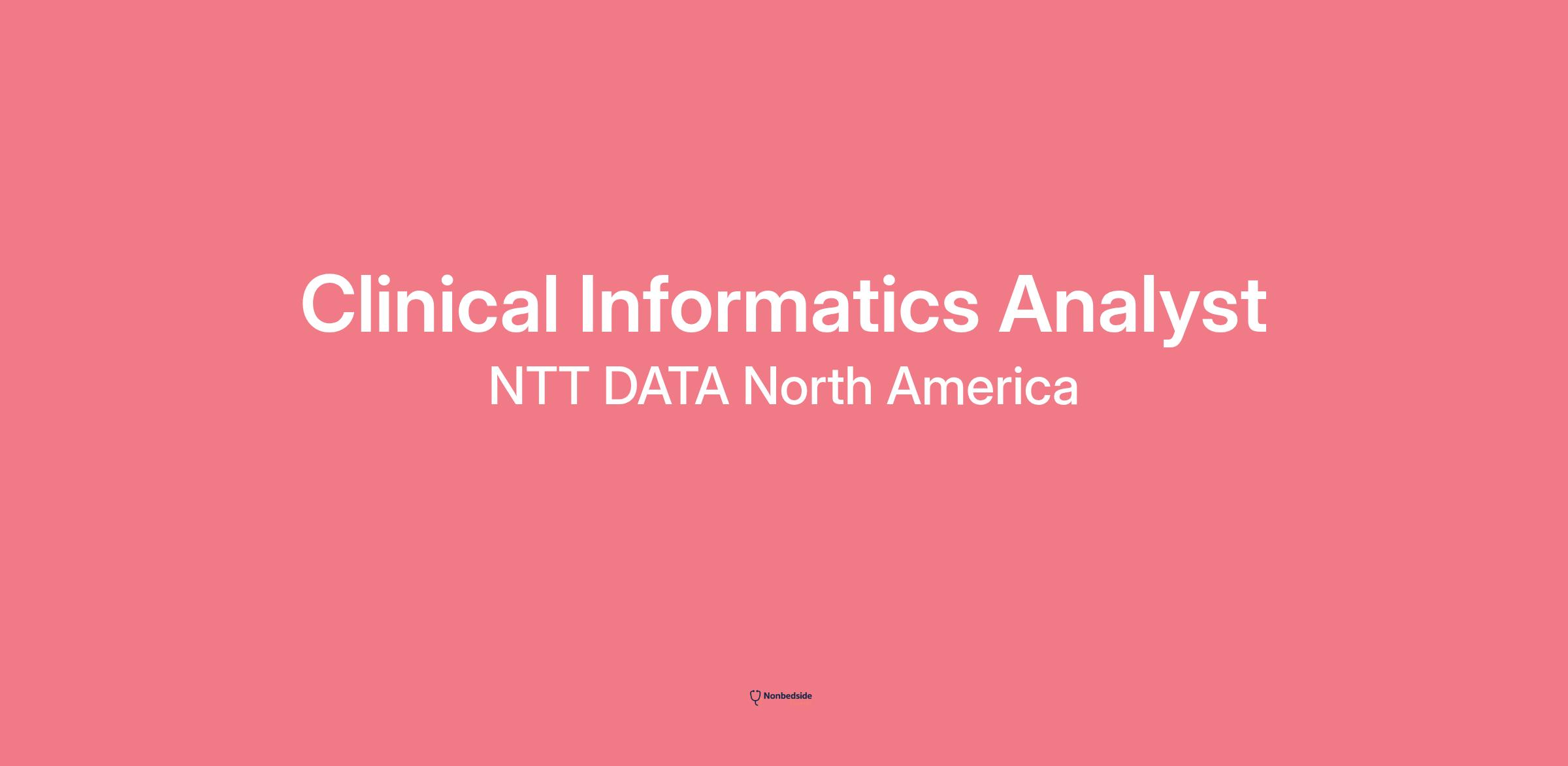NTT DATA is currently seeking an Clinical Informatics Analyst to join our U.S. remote team.