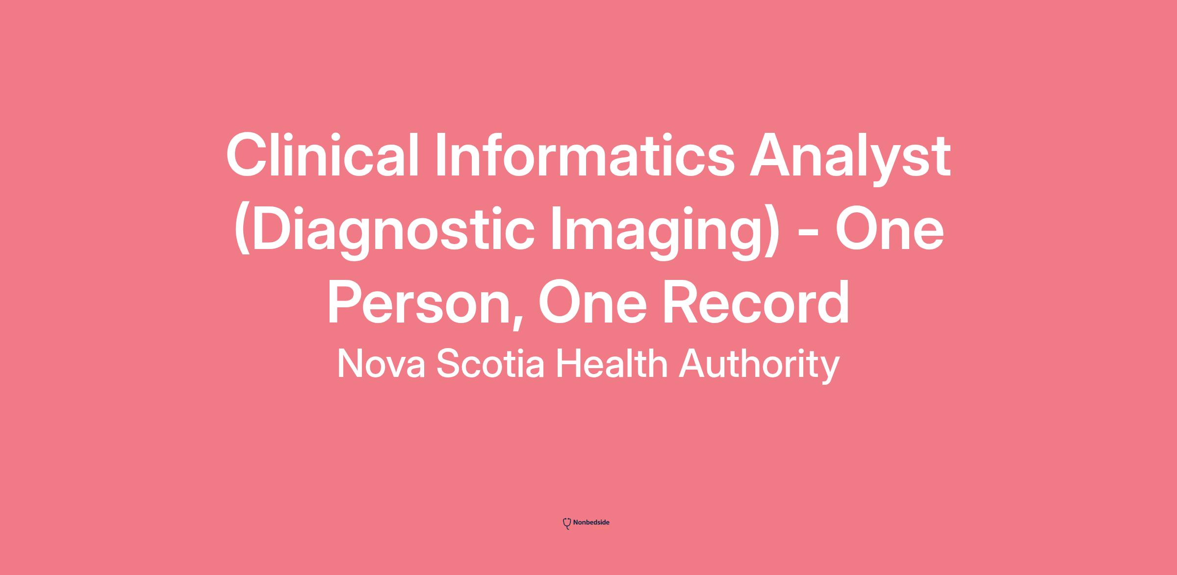 About the Opportunity The Diagnostic Imaging Clinical Informatics Analyst will support the design, implementation, optimization, and adoption of clinical informatics initiatives by working collaboratively with stakeholders, technical experts and/or vendors as required. Using critical and creative thinking the Diagnostic Imaging Clinical Informatics Analyst analyzes, prioritizes, and translates user needs and requests related to the diagnostic imaging aspects of the CIS. The Diagnostic Imaging Clinical Informatics Analyst works with stakeholders across NSH, IWK and its many external partners.