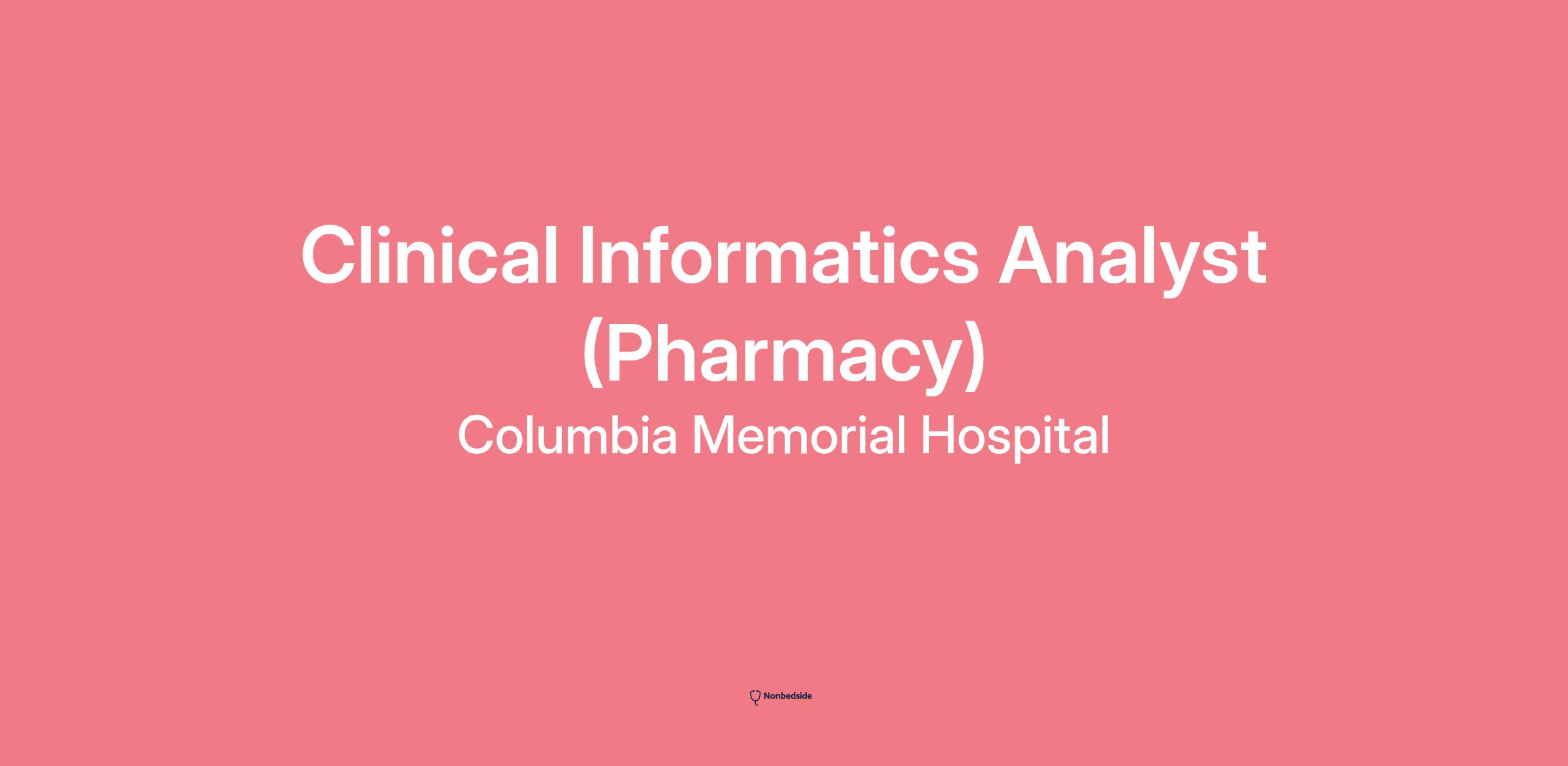 Join to apply for the Clinical Informatics Analyst (Pharmacy) role at Columbia Memorial Hospital .