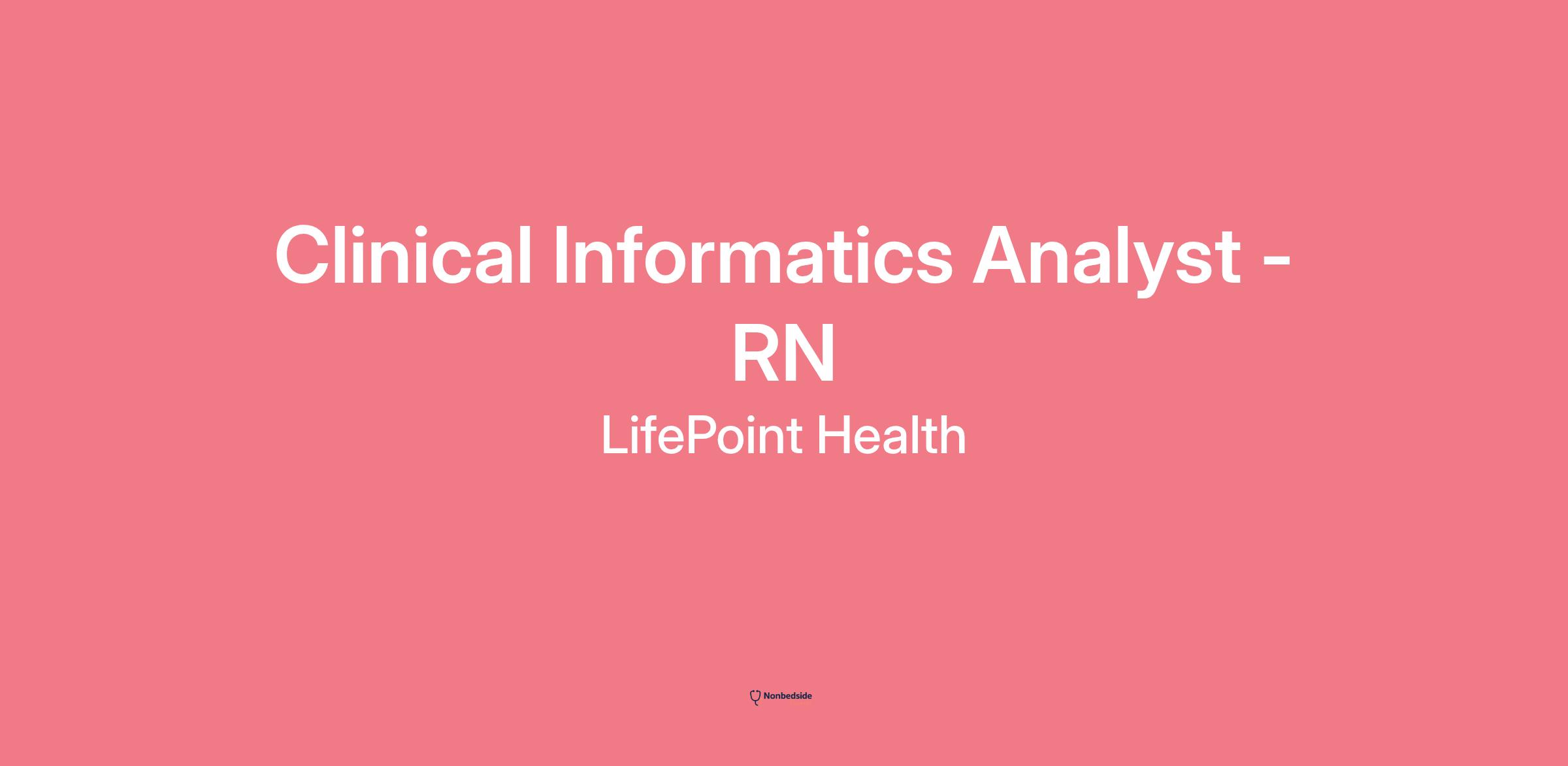 Overview Join to apply for the Clinical Informatics Analyst role at Lifepoint Health .