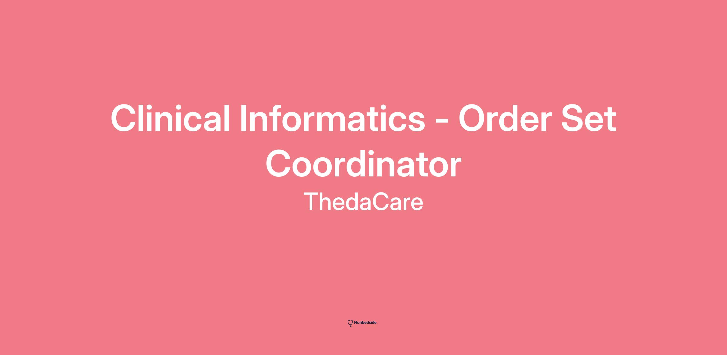 The Clinical Informatics Order Set Coordinator plays a pivotal role in optimizing clinical workflows and enhancing patient care through the development, implementation, and maintenance of evidence-based order sets within ThedaCare's electronic health record (EHR) system. This position bridges clinical practice and health IT, ensuring that order sets support safe, efficient, and standardized care delivery across the organization.