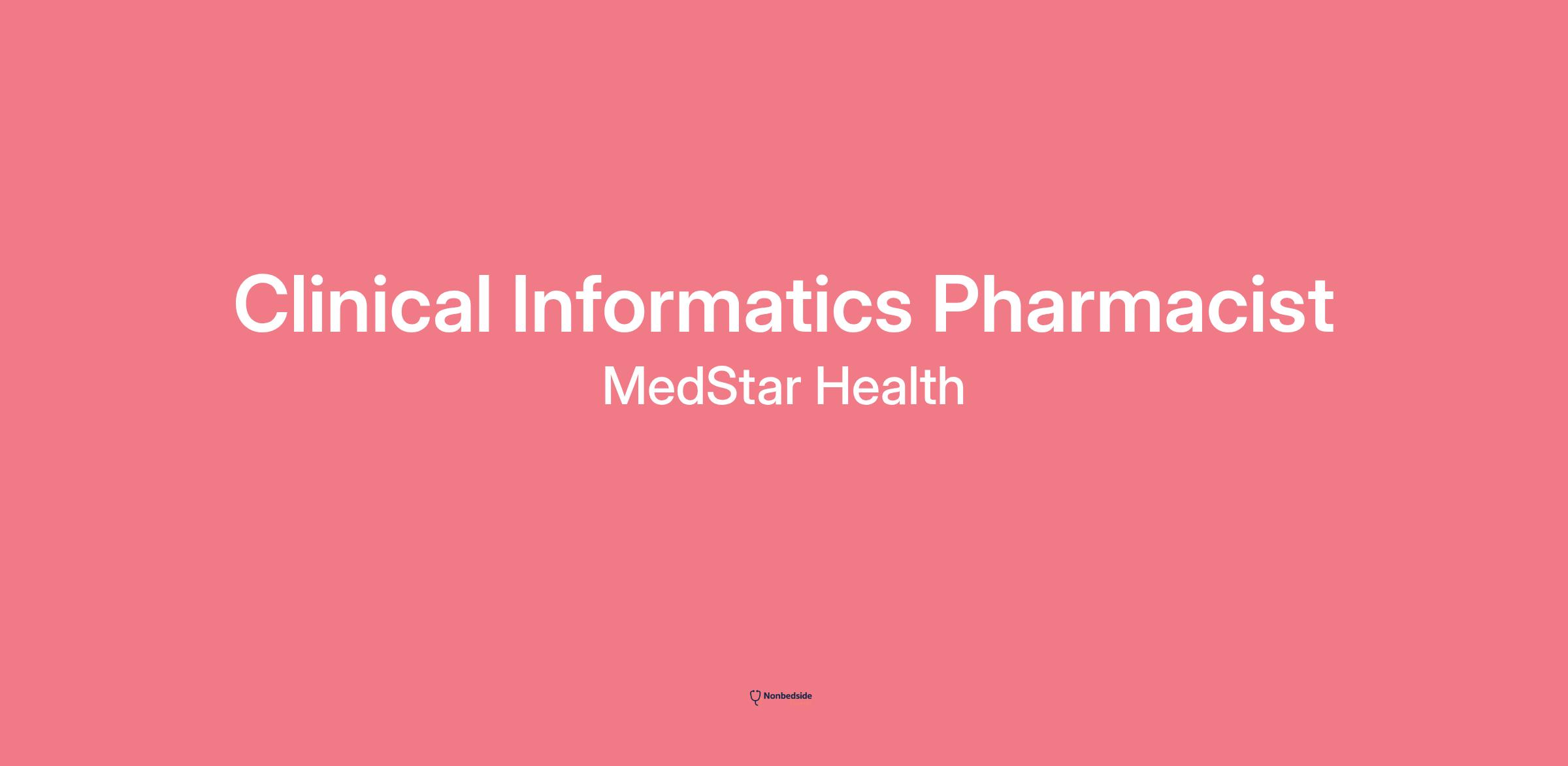 We have an opportunity available for an experienced Clinical Informatics Pharmacist to join our innovative team at MedStar Georgetown University Hospital in Washington, DC.