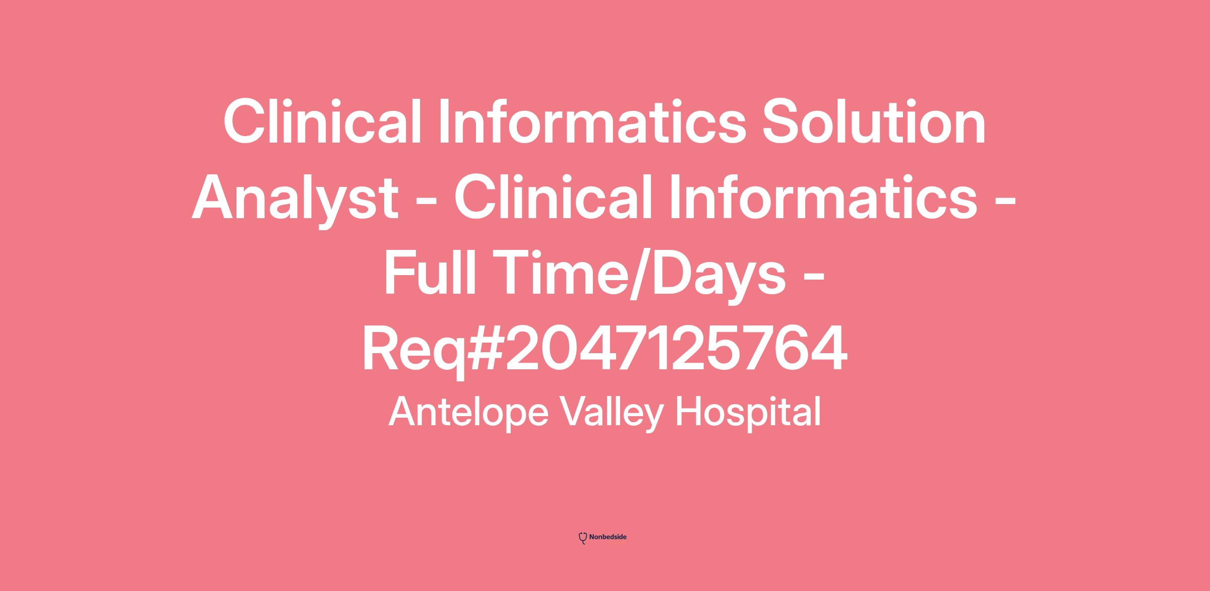 The Clinical Informatics Solution Analyst (Analyst) is responsible for supporting one or more solutions of a major Cerner implementation and subsequent maintenance and enhancements. They will leverage their clinical and technical experience in trouble-shooting and resolving solution issues, implementing future solutions upgrades/enhancements, identifying opportunities for system or process optimization, and supporting the implementation of new solutions.